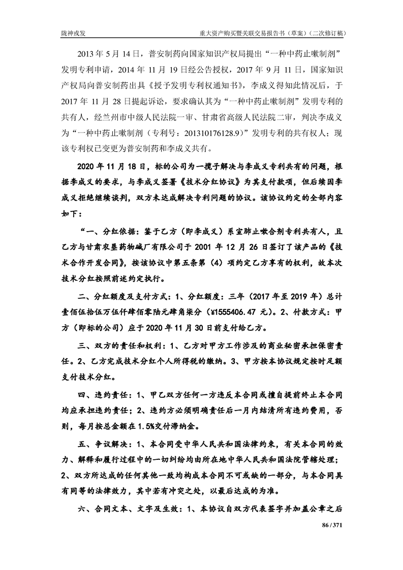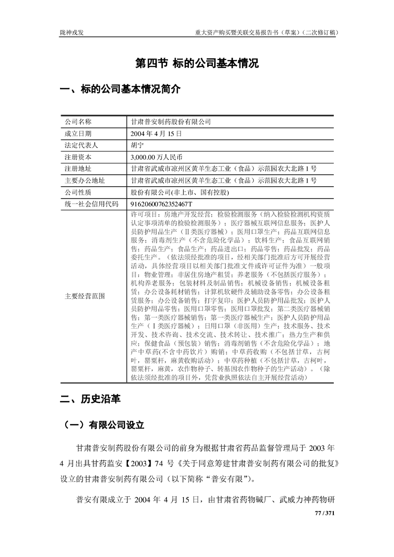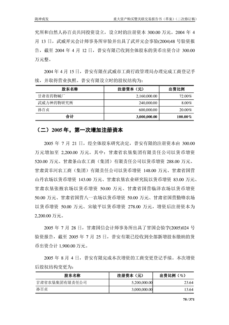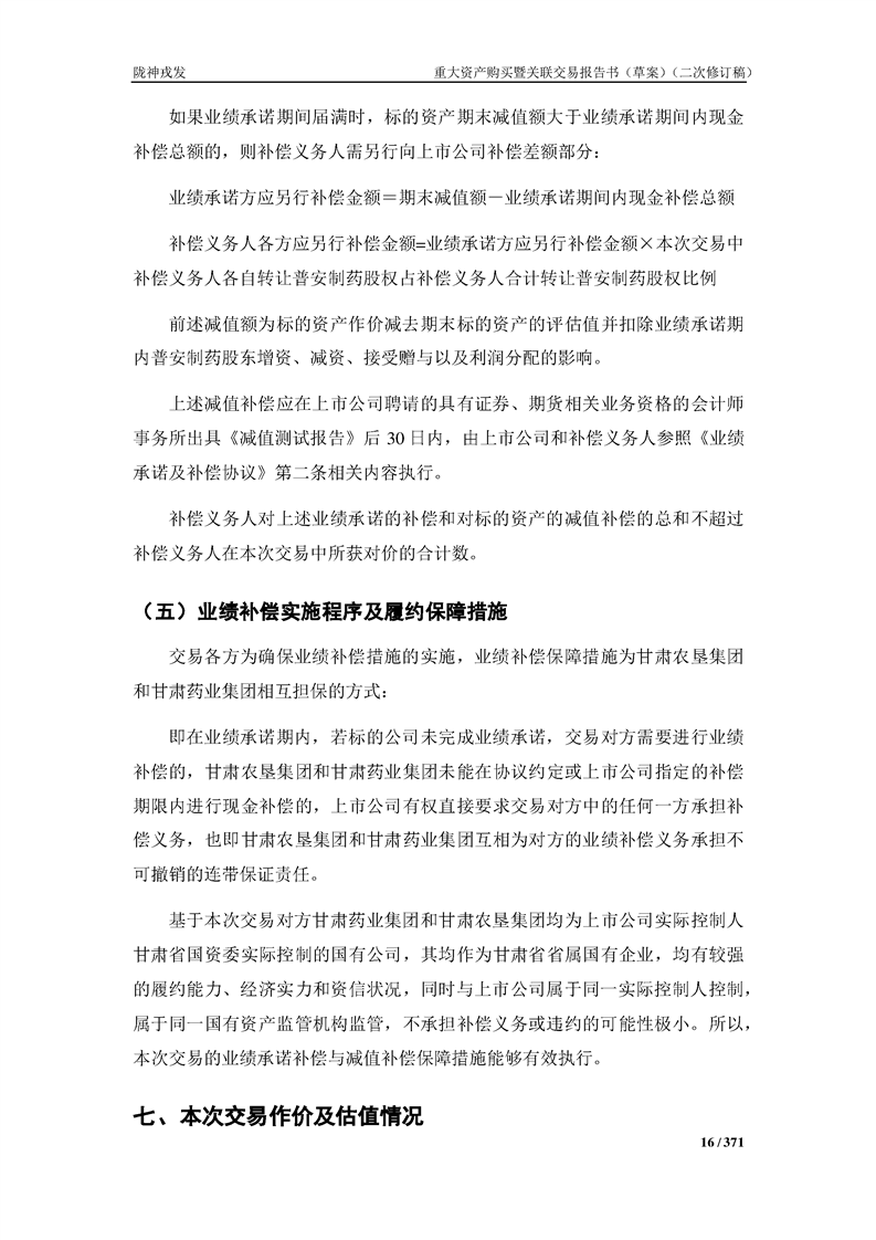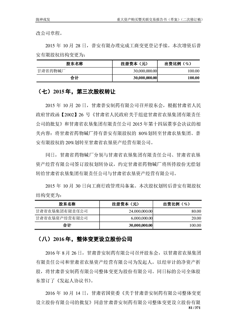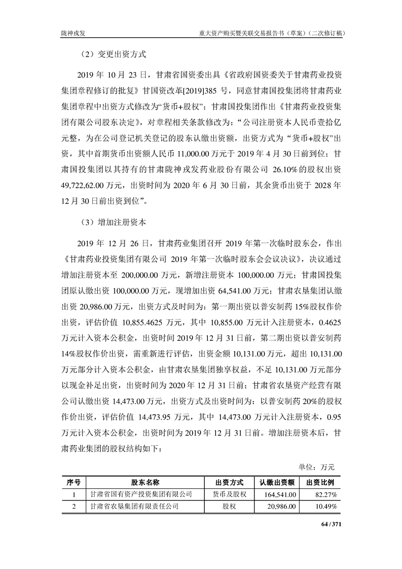 甘肅隴神戎發(fā)藥業(yè)股份有限公司重大資產(chǎn)購買暨關(guān)聯(lián)交易報告書(草案)摘要(二次修訂稿)