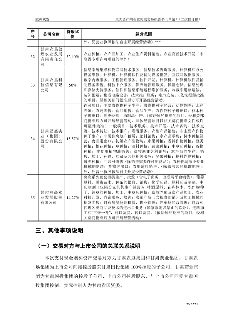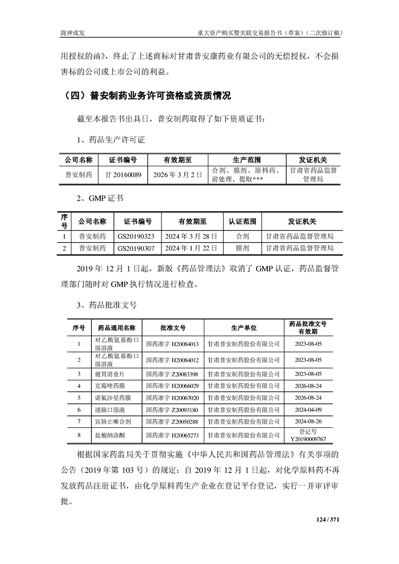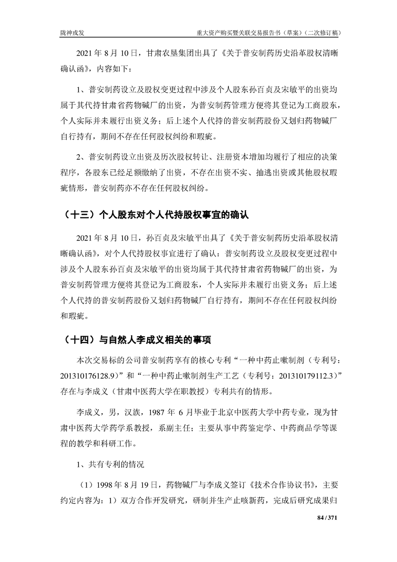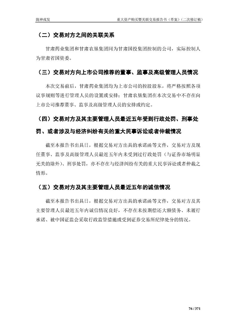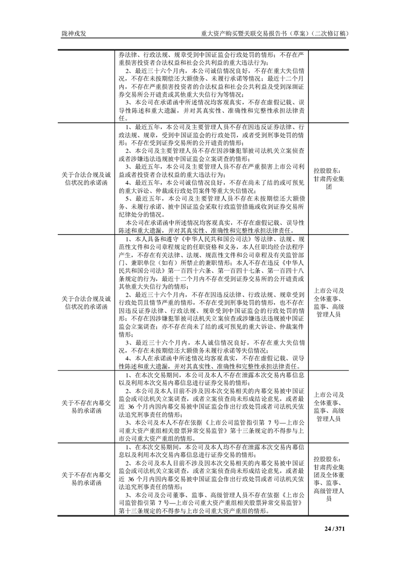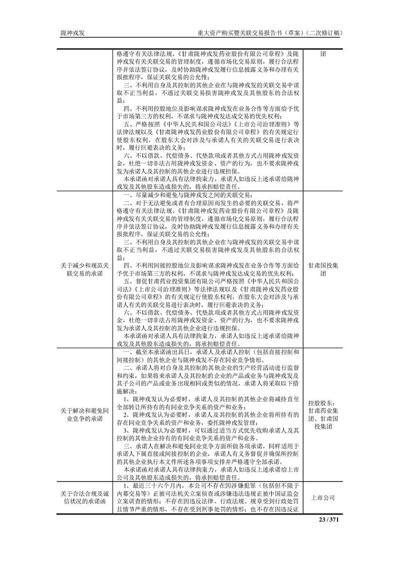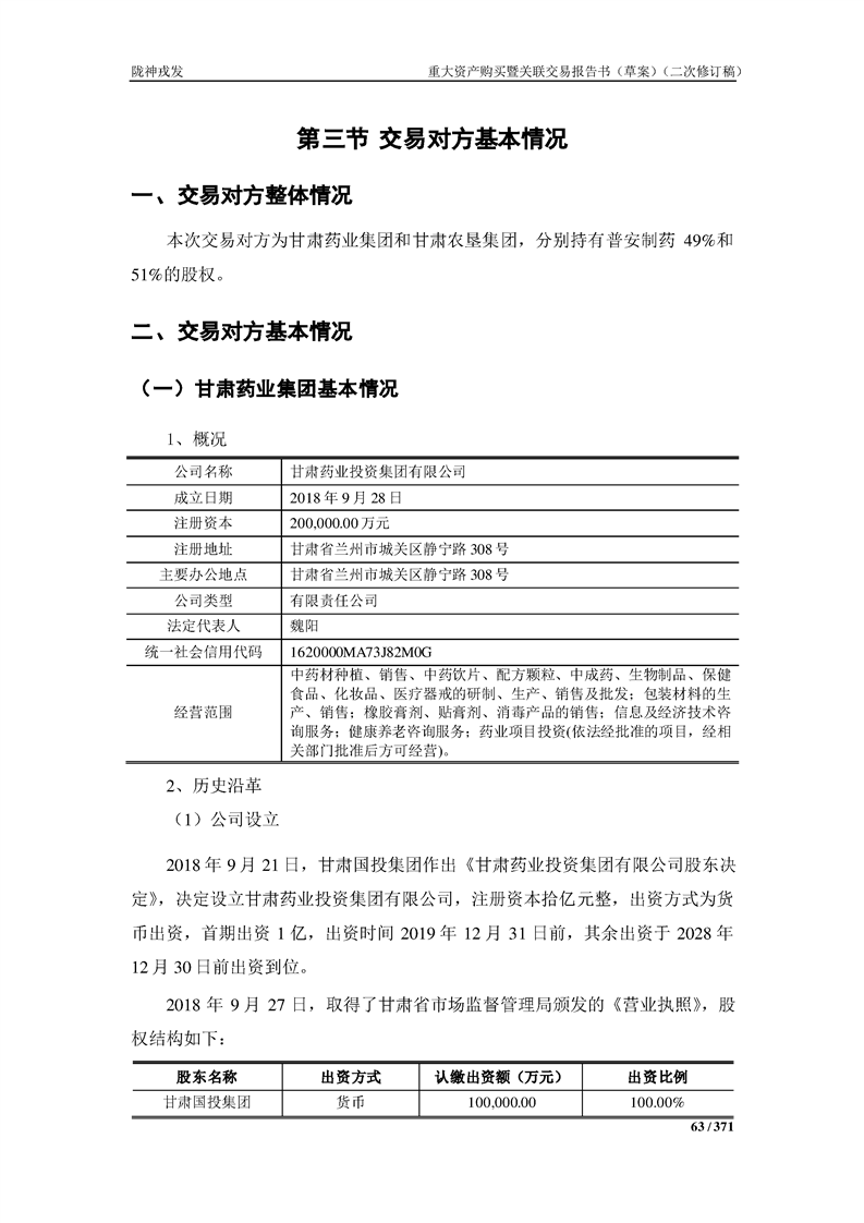 甘肅隴神戎發(fā)藥業(yè)股份有限公司重大資產(chǎn)購買暨關(guān)聯(lián)交易報告書(草案)摘要(二次修訂稿)