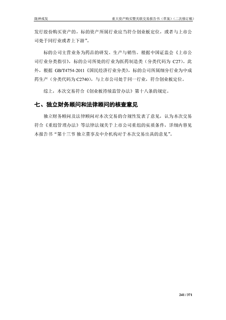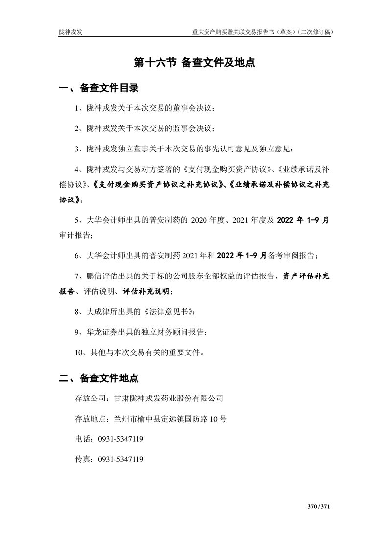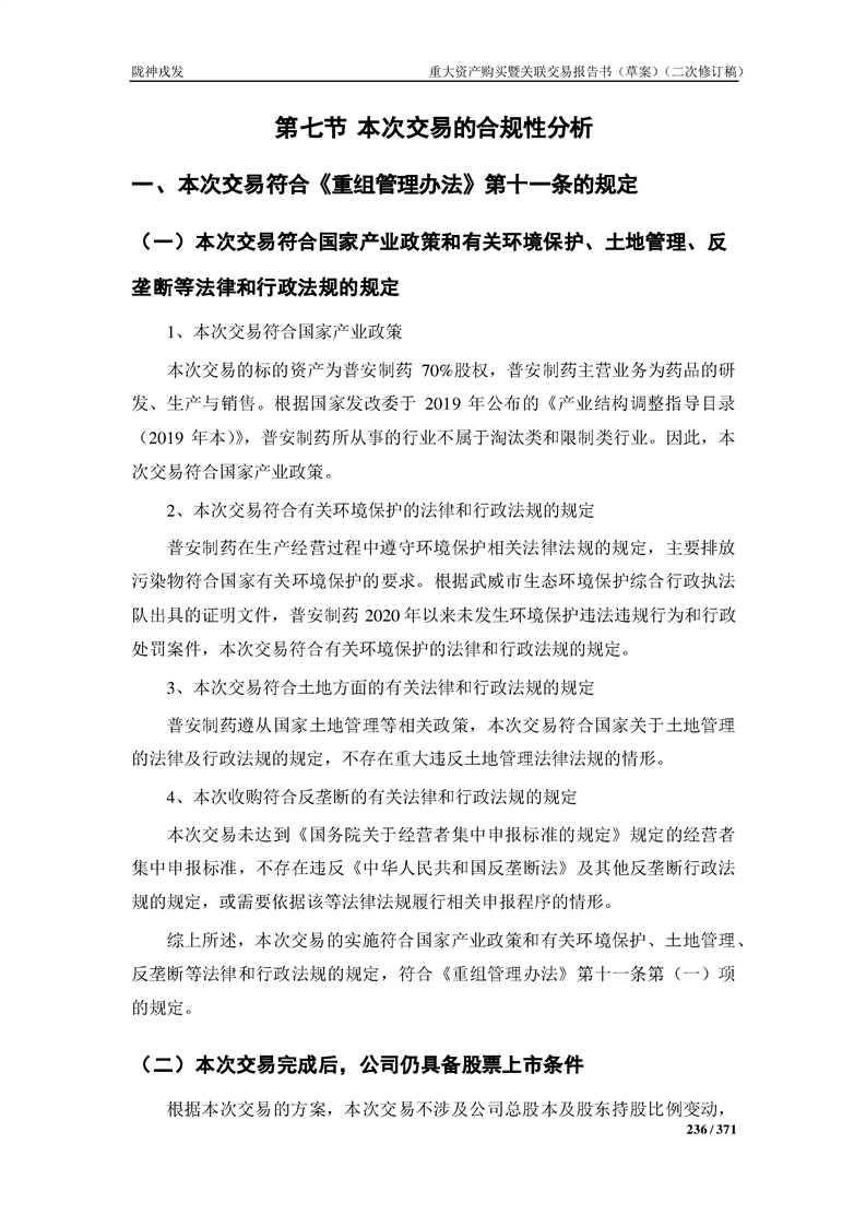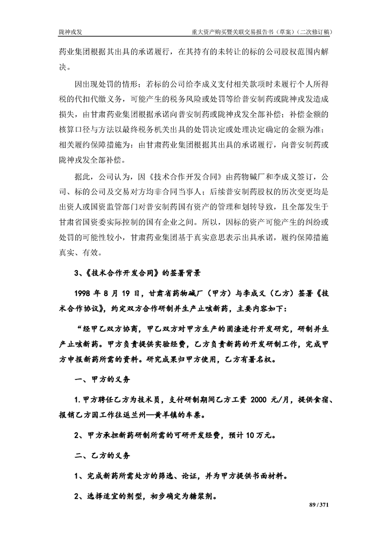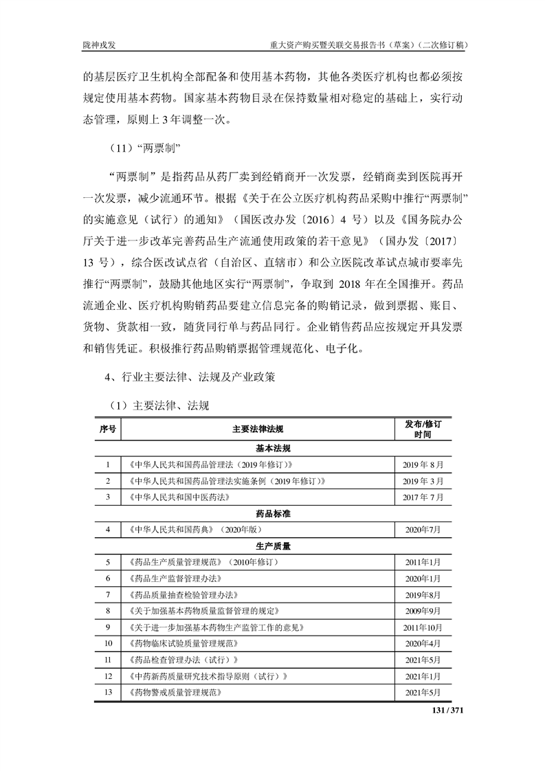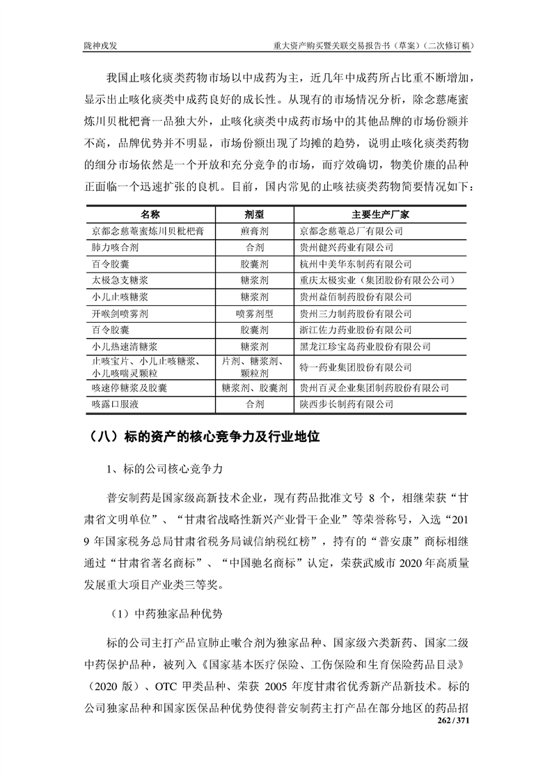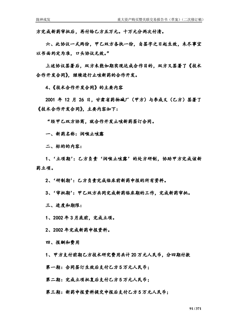 甘肅隴神戎發(fā)藥業(yè)股份有限公司重大資產(chǎn)購買暨關(guān)聯(lián)交易報告書(草案)摘要(二次修訂稿)
