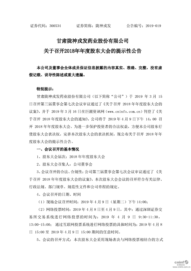 關于召開2018年年度股東大會的提示性公告