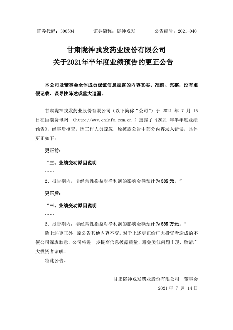 關(guān)于2021年半年度業(yè)績預(yù)告的更正公告