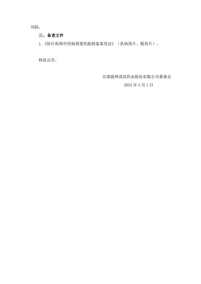 關(guān)于收到醫(yī)療機(jī)構(gòu)中藥制劑委托配制備案憑證的公告