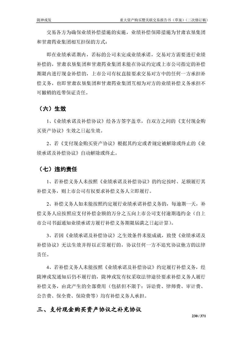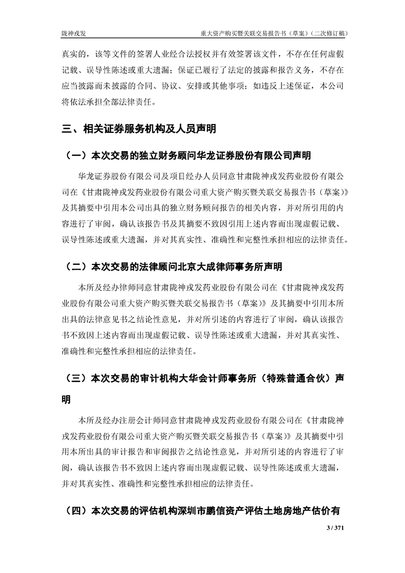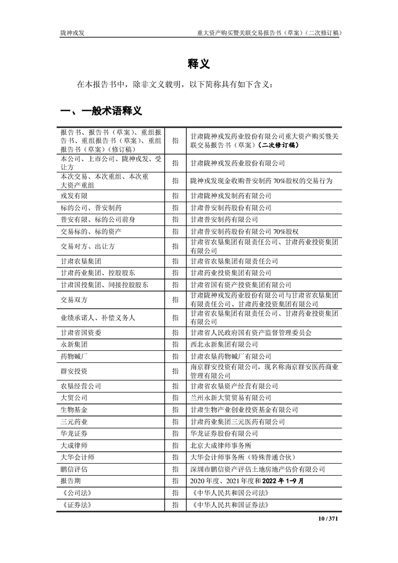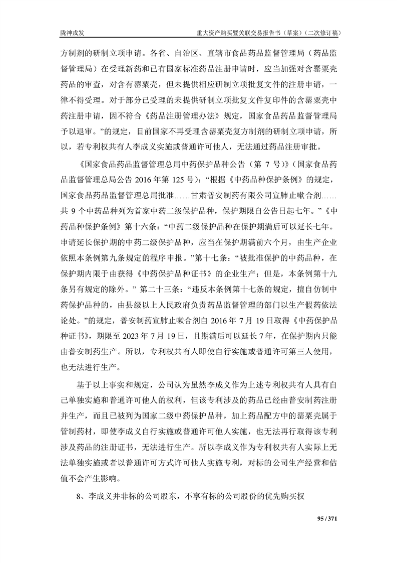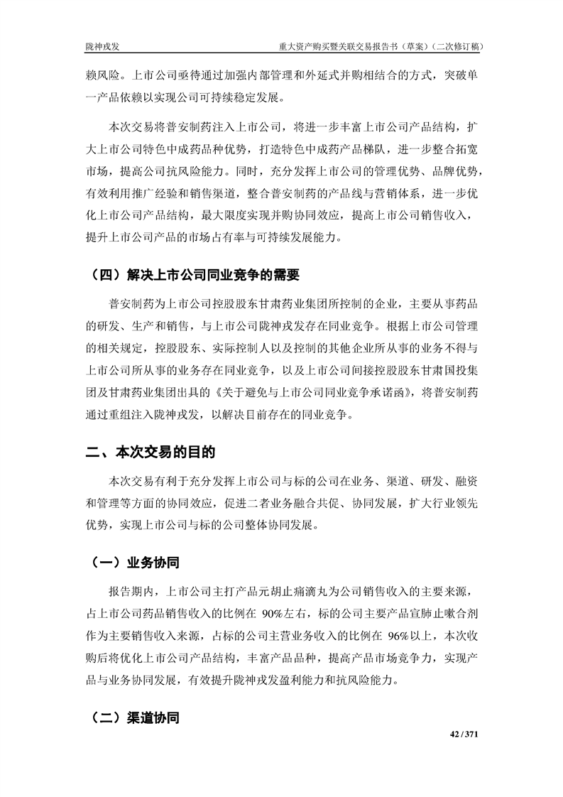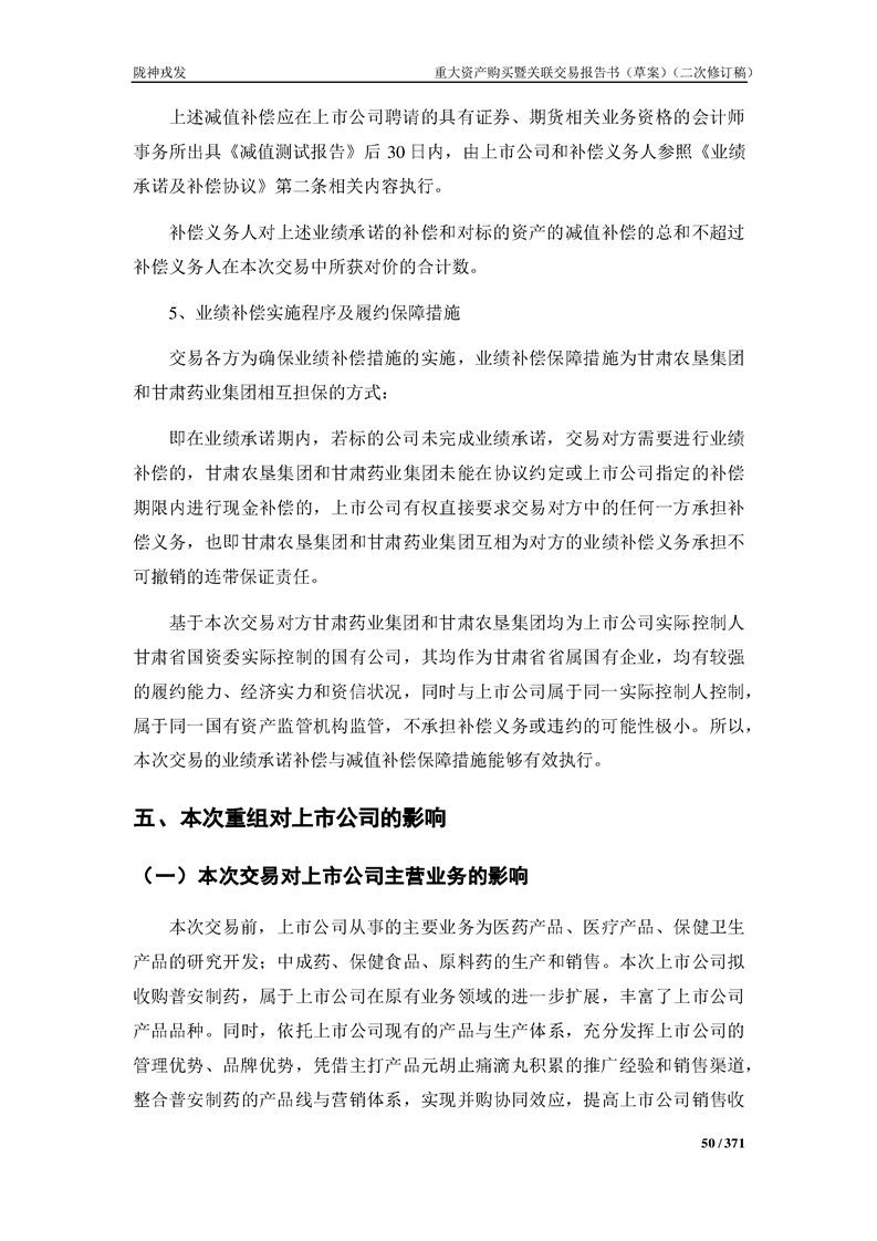 甘肅隴神戎發(fā)藥業(yè)股份有限公司重大資產(chǎn)購(gòu)買暨關(guān)聯(lián)交易報(bào)告書(草案)(二次修訂稿)