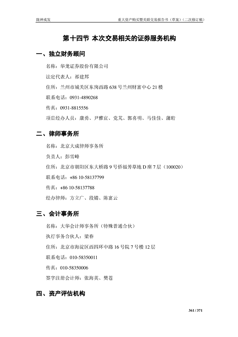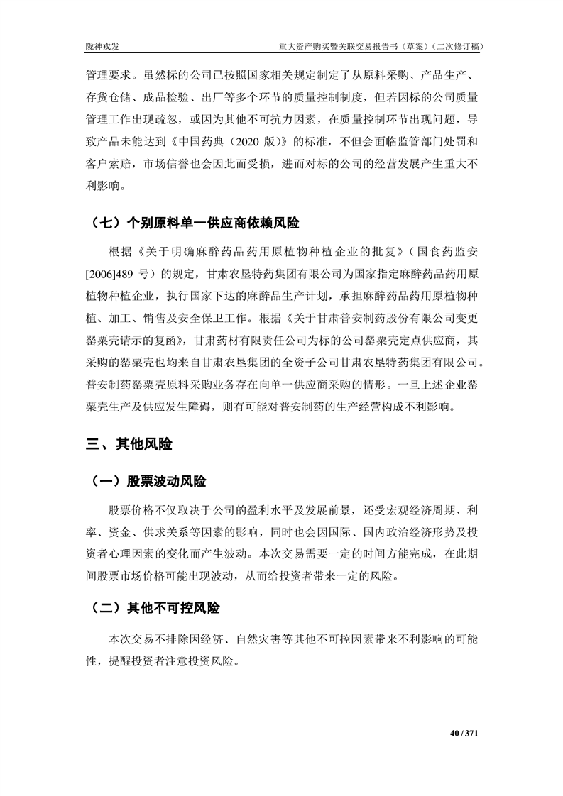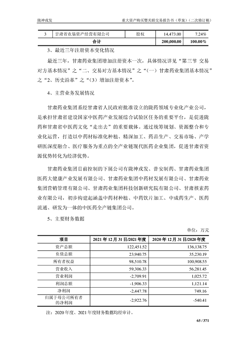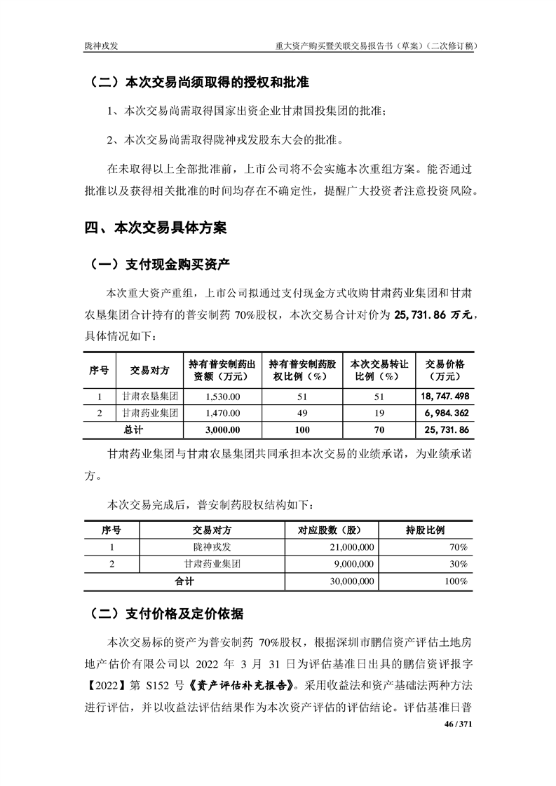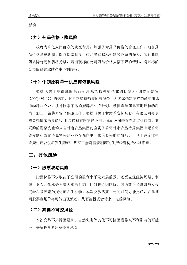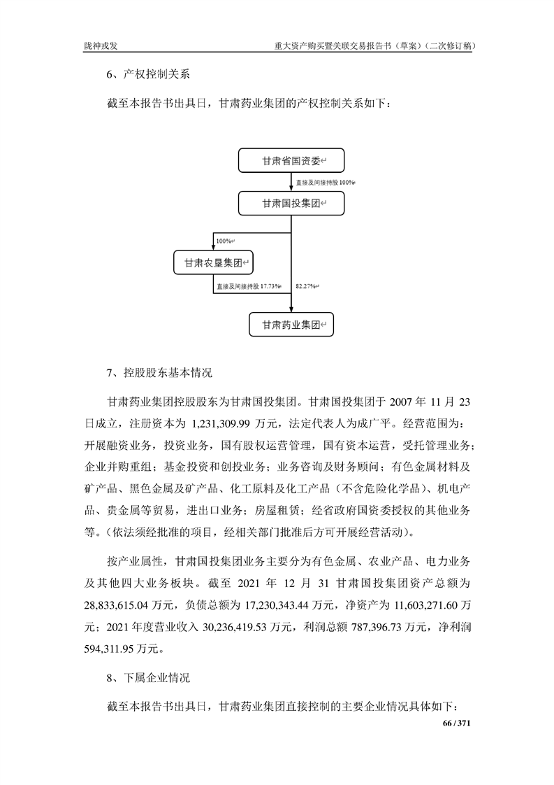 甘肅隴神戎發(fā)藥業(yè)股份有限公司重大資產(chǎn)購(gòu)買暨關(guān)聯(lián)交易報(bào)告書(草案)(二次修訂稿)