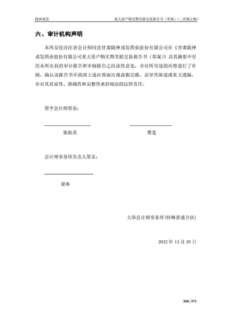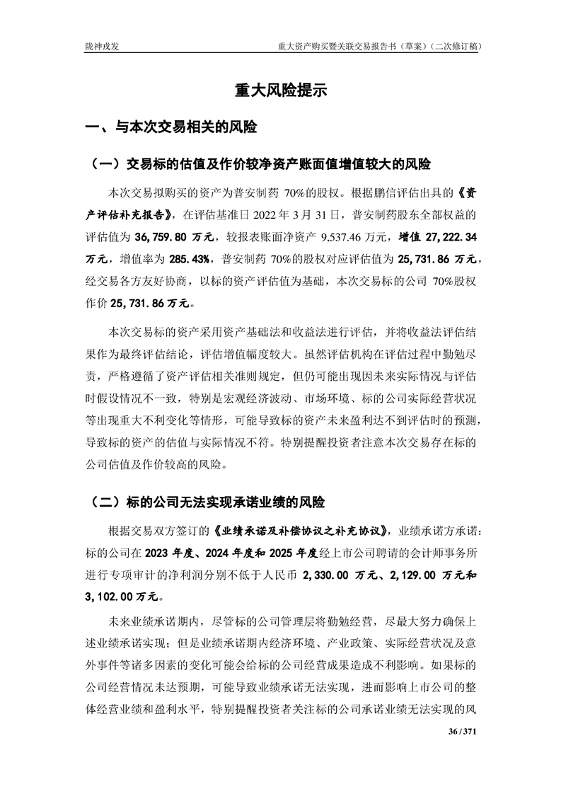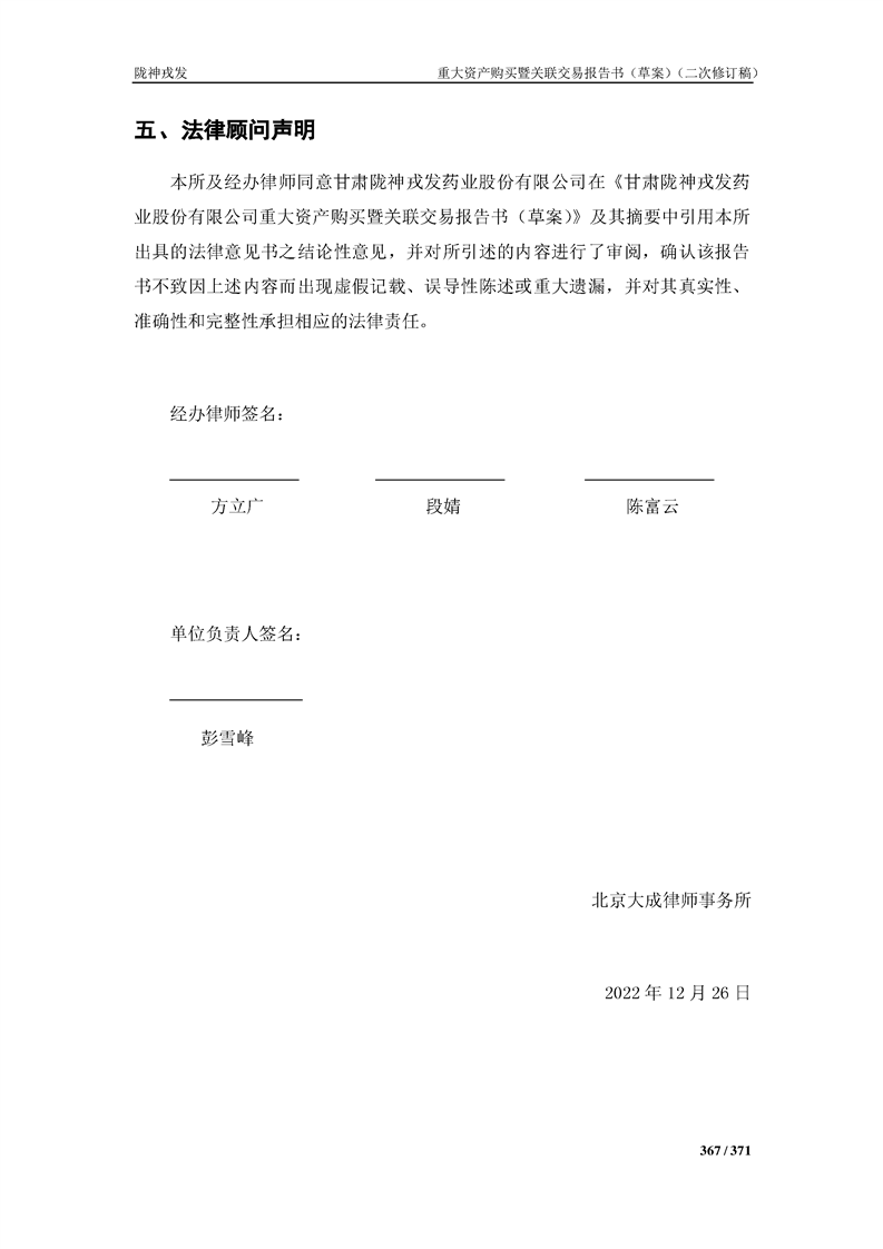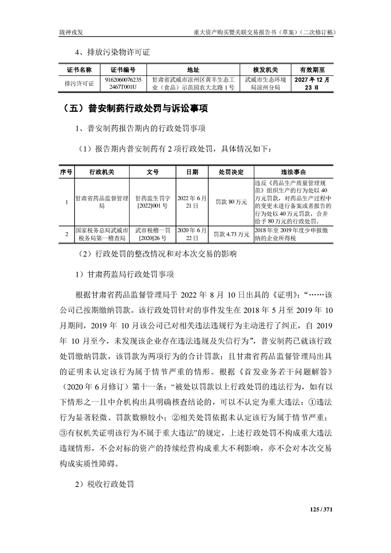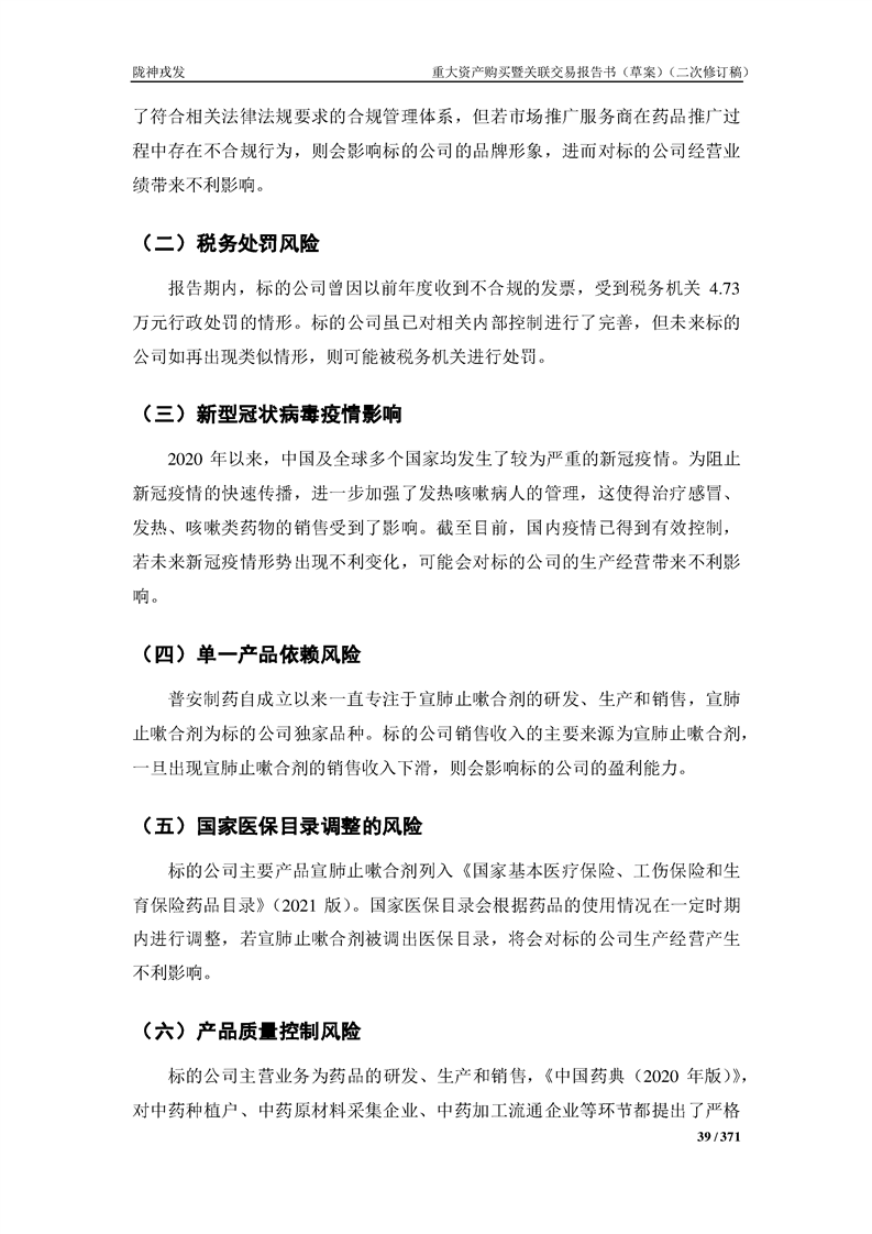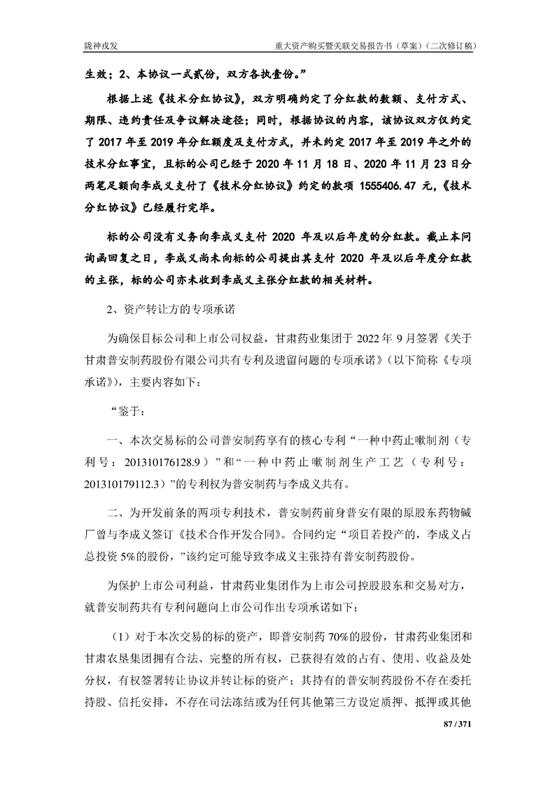甘肅隴神戎發(fā)藥業(yè)股份有限公司重大資產(chǎn)購(gòu)買暨關(guān)聯(lián)交易報(bào)告書(草案)(二次修訂稿)