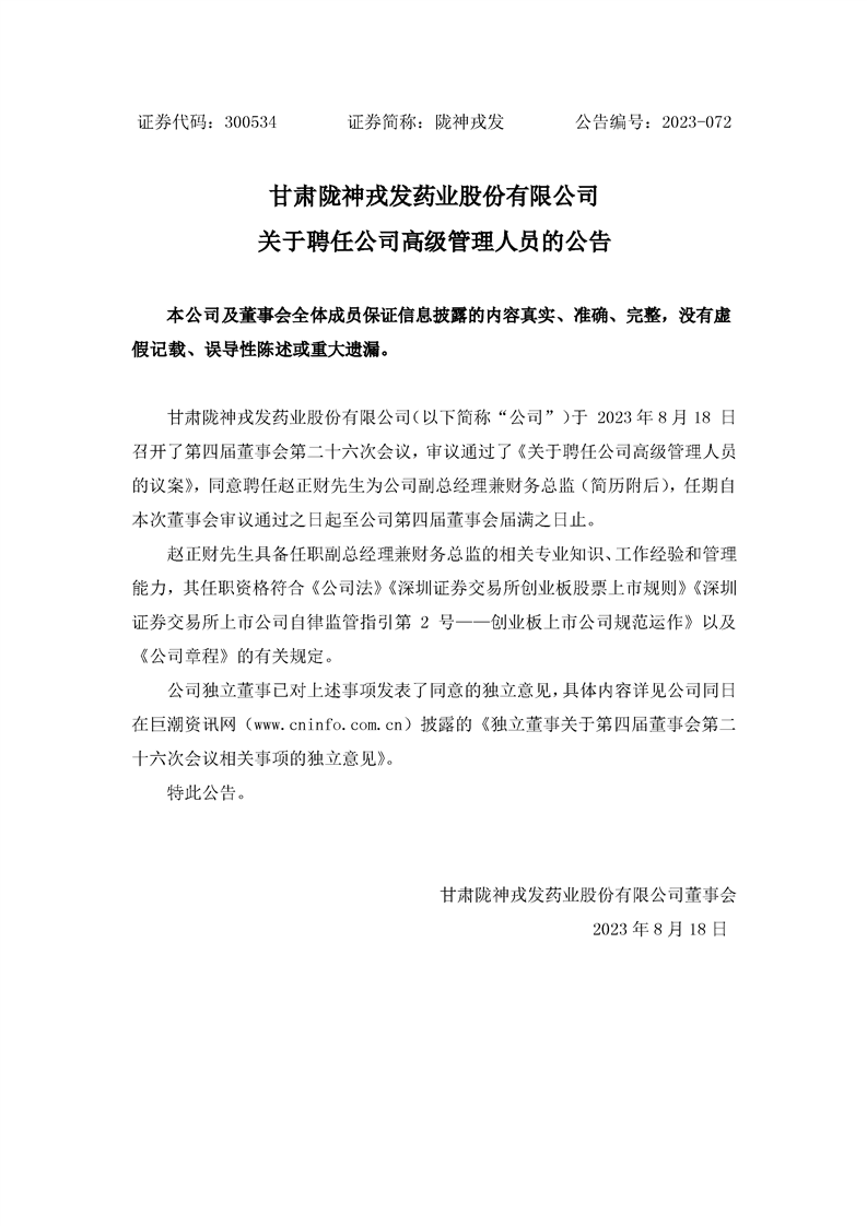 關(guān)于聘任公司高級(jí)管理人員的公告