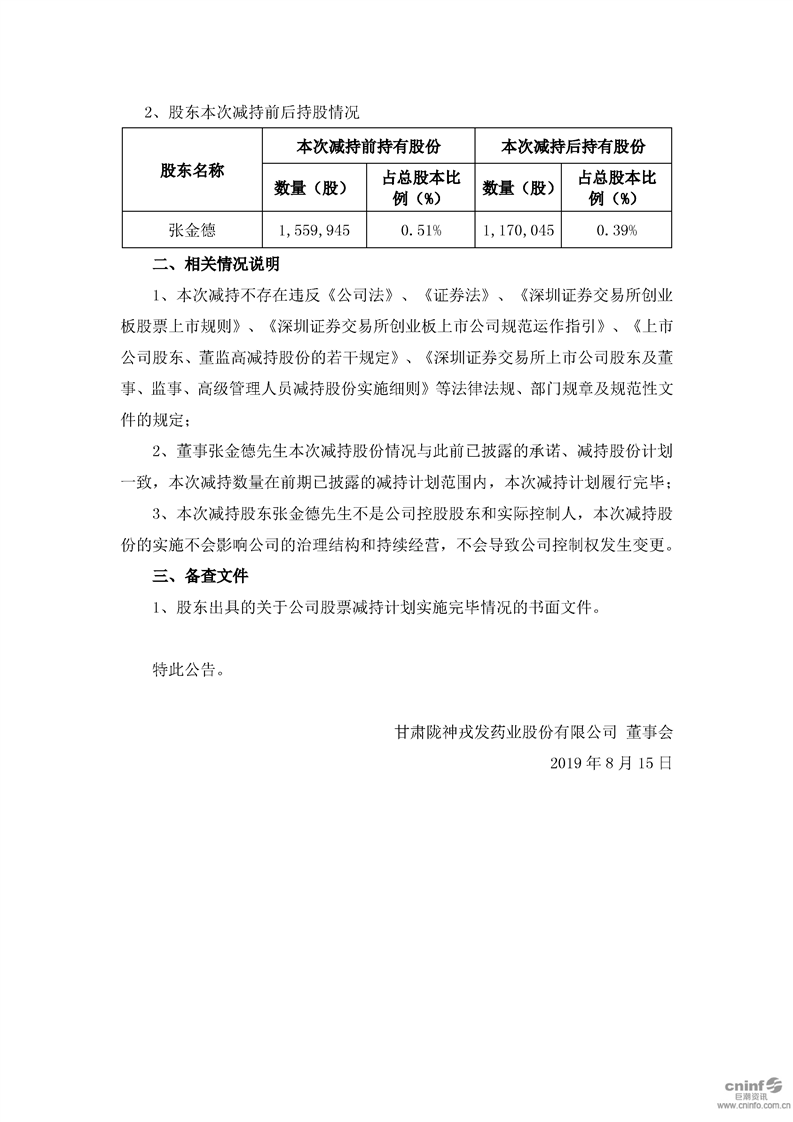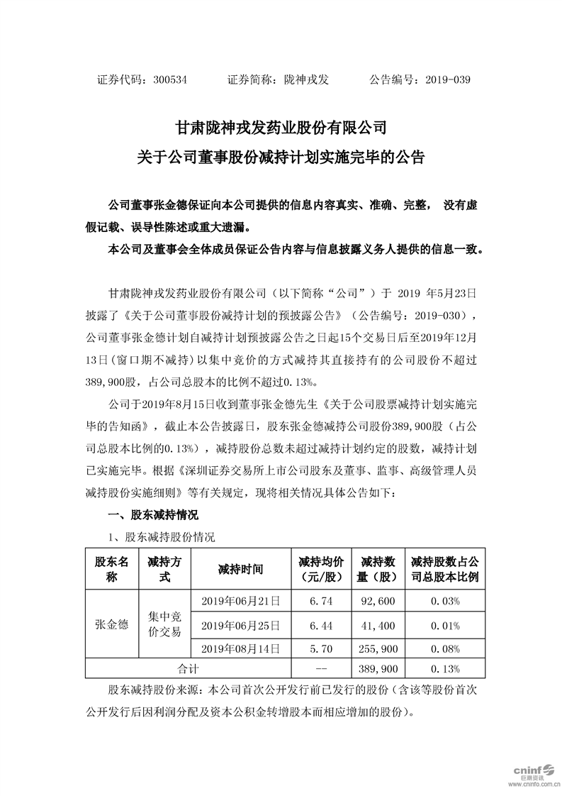 關(guān)于公司董事股份減持計劃實施完畢的公告