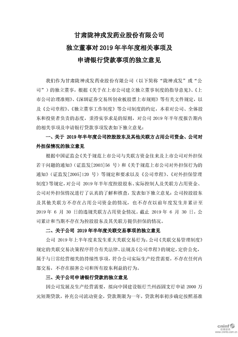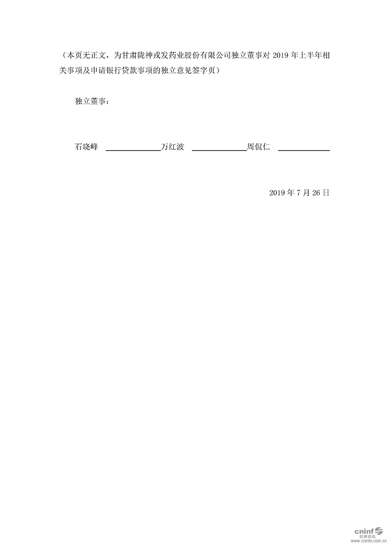 獨(dú)立董事對(duì)2019年半年度相關(guān)事項(xiàng)及申請(qǐng)銀行貸款事項(xiàng)的獨(dú)立意見(jiàn)