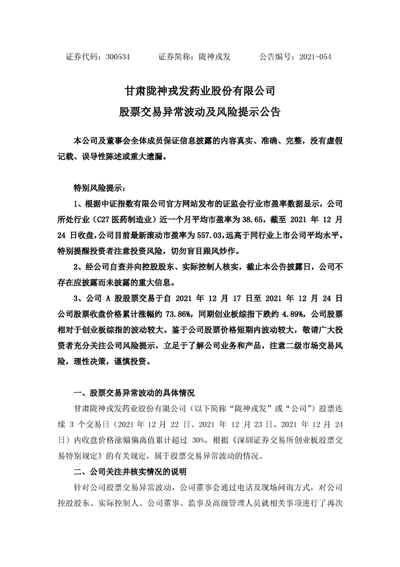 股票交易異常波動及風險提示公告