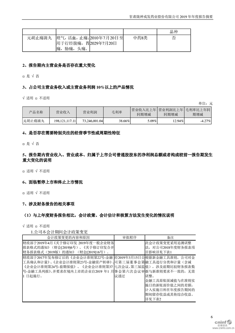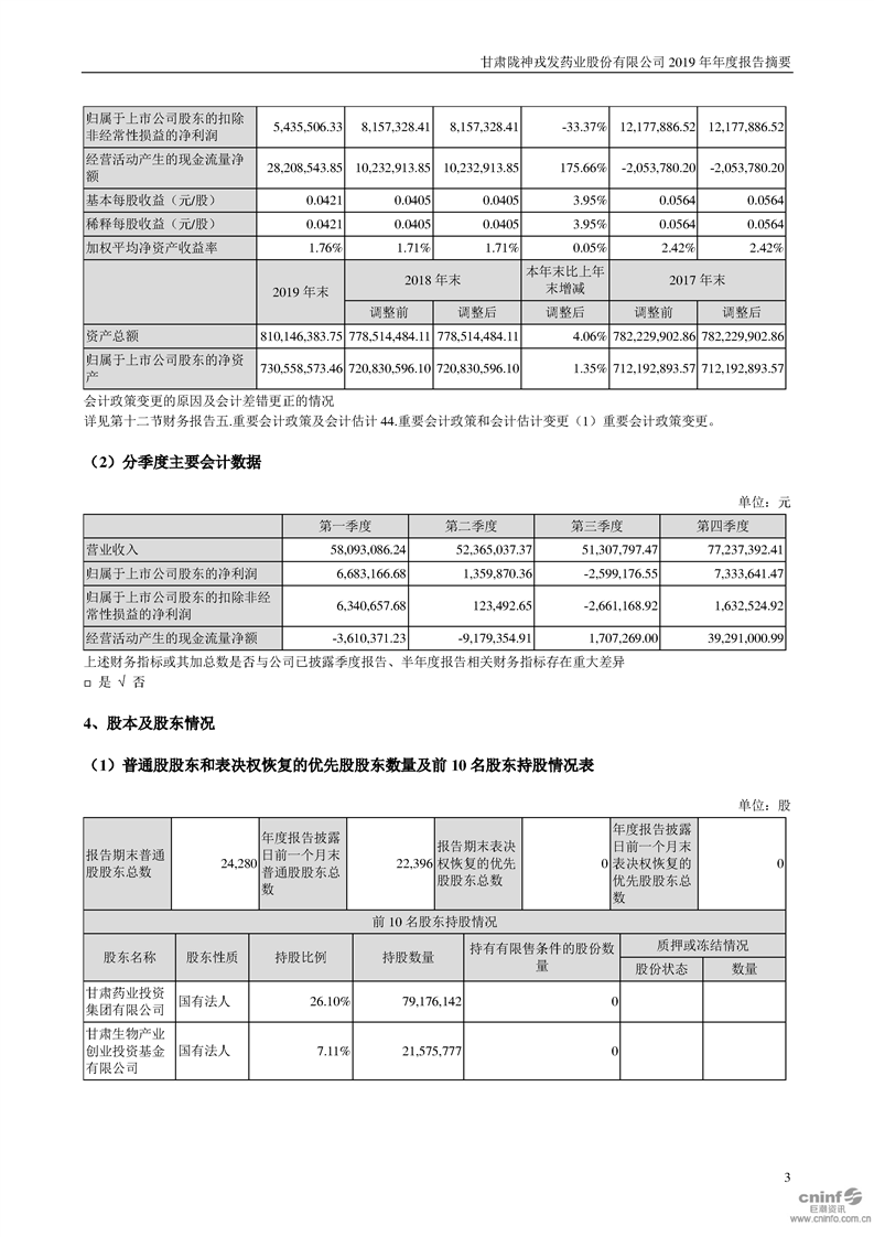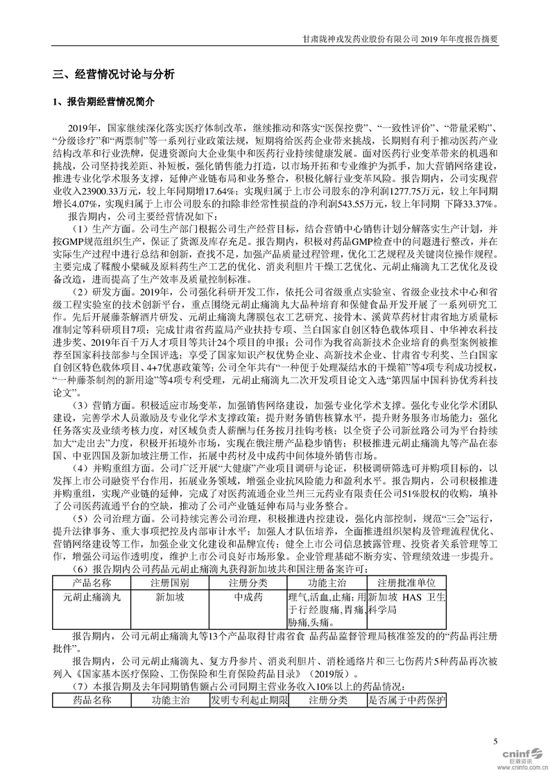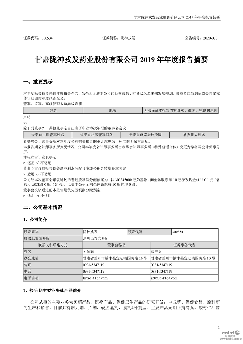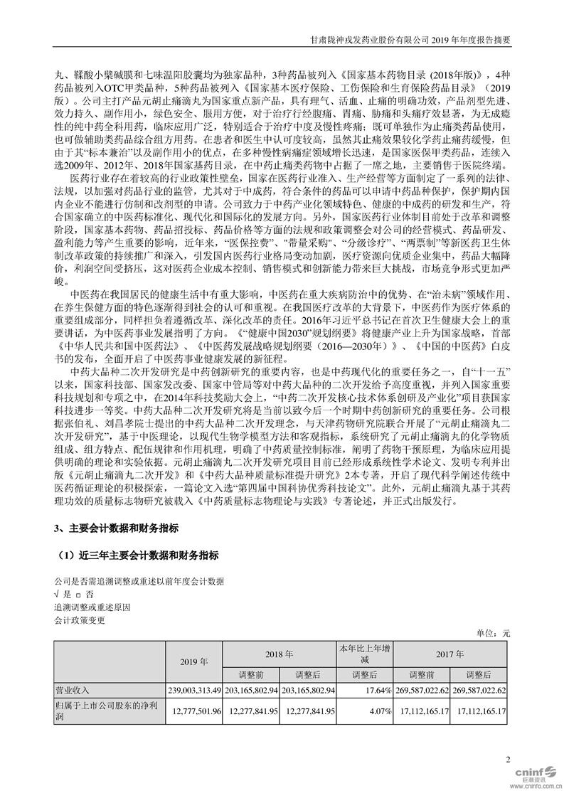 2019年年度報告摘要