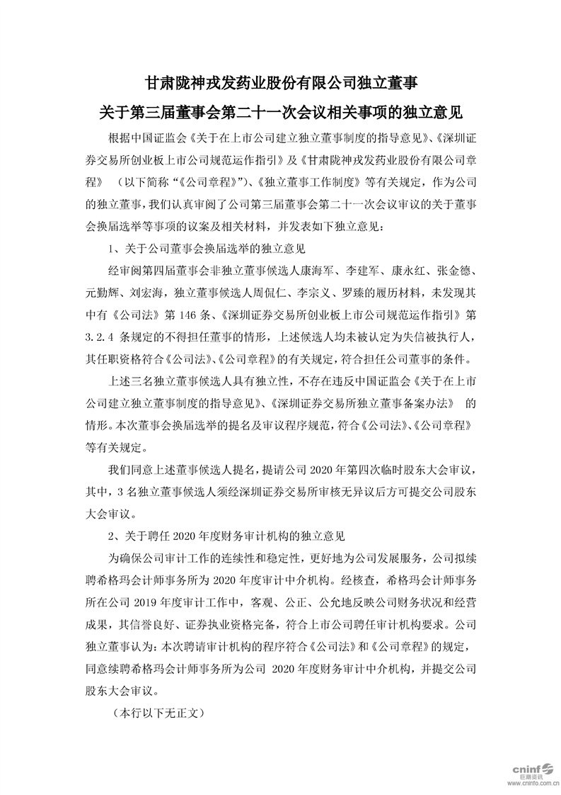 獨立董事關(guān)于第三屆董事會第二十一次會議相關(guān)事項的獨立意見