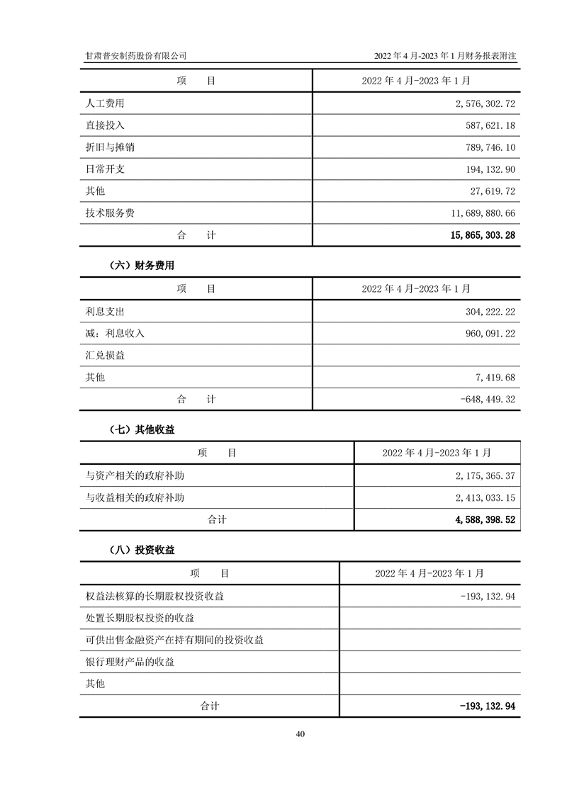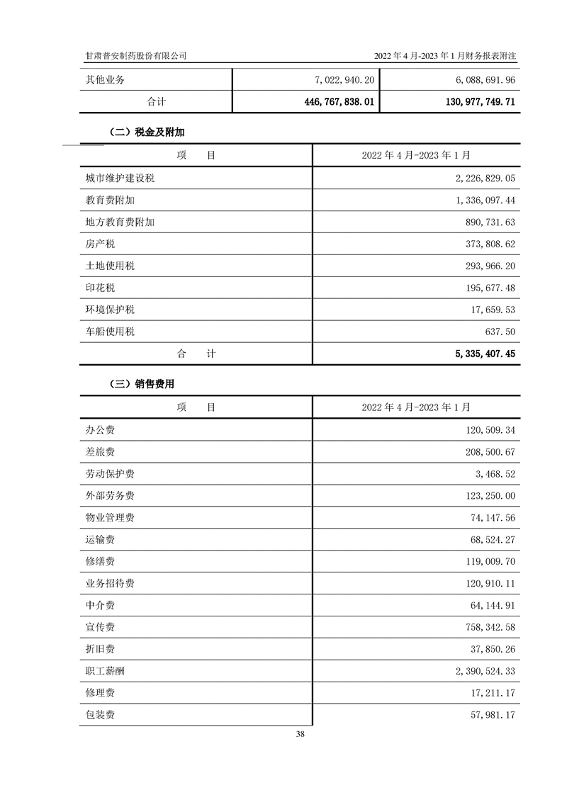 甘肅普安制藥股份有限公司資產(chǎn)重組過渡期損益情況專項(xiàng)審計(jì)報(bào)告