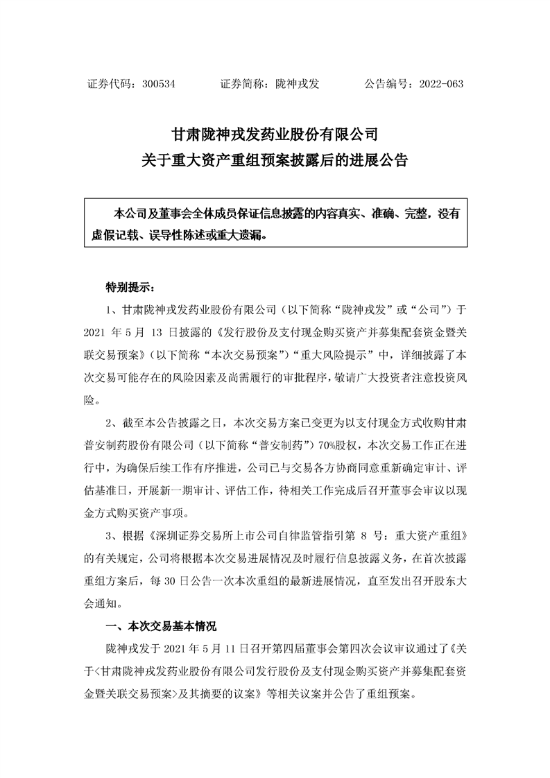 關(guān)于重大資產(chǎn)重組預(yù)案披露后的進(jìn)展公告