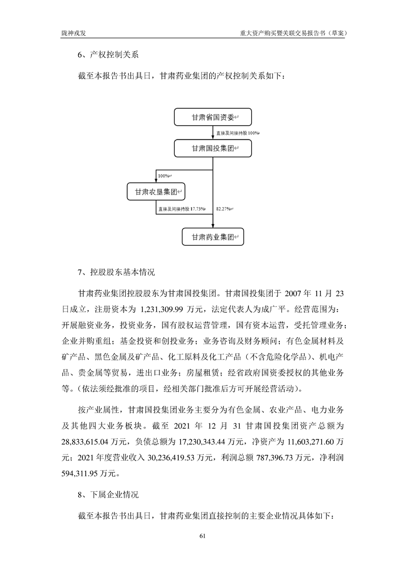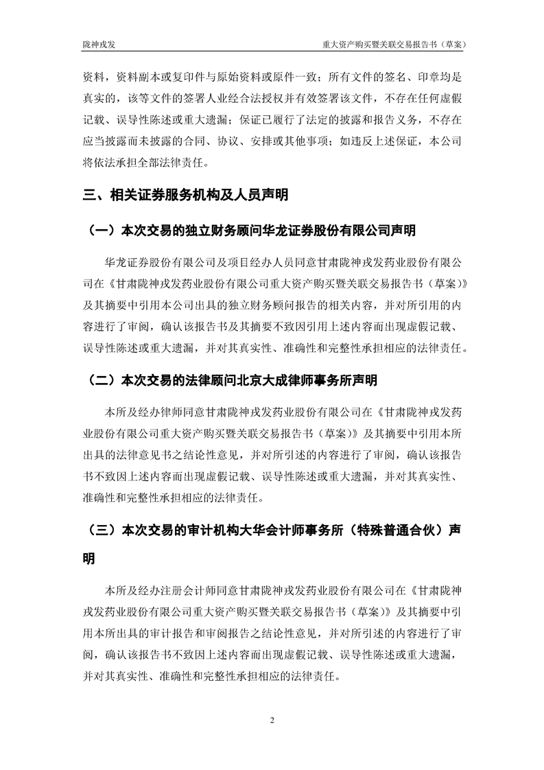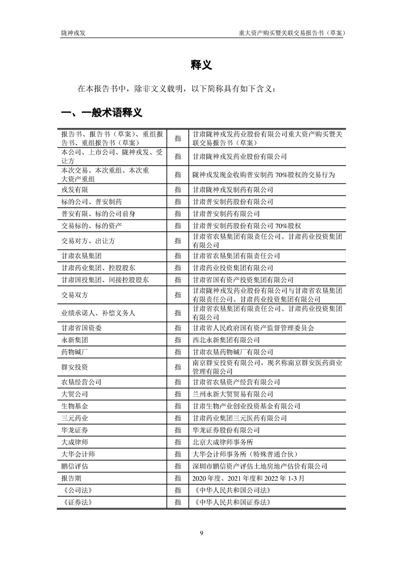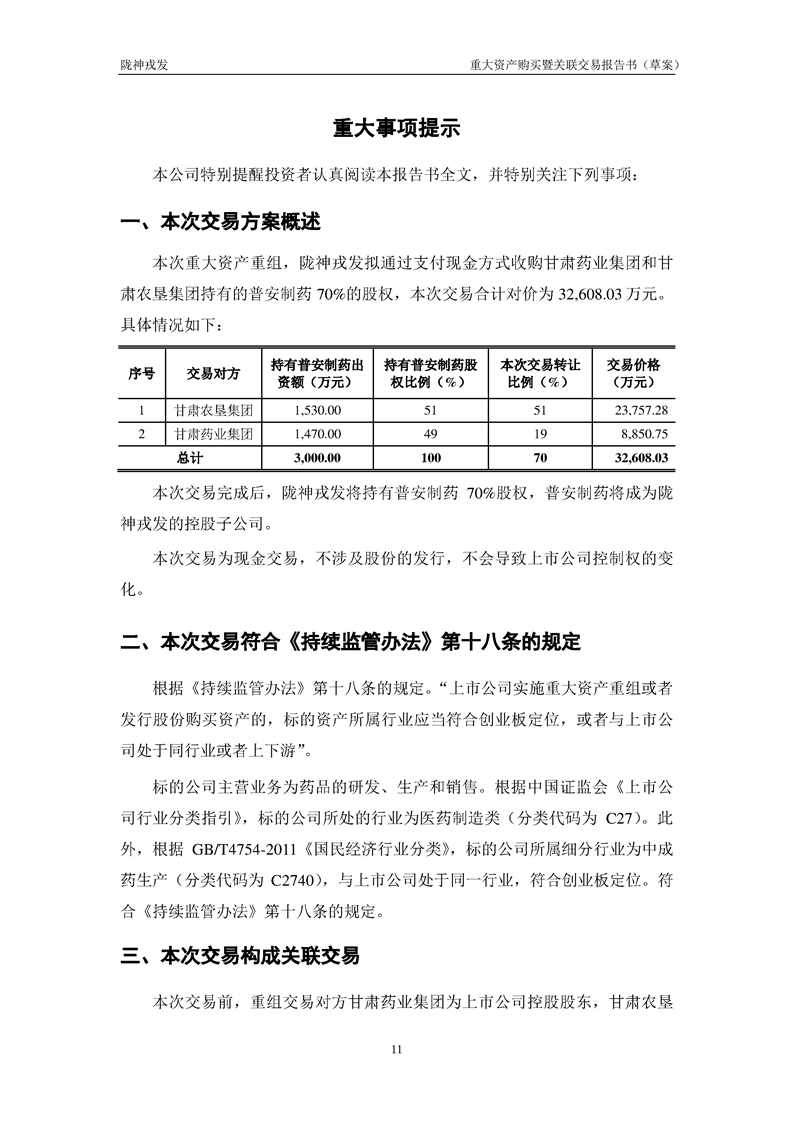 甘肅隴神戎發(fā)藥業(yè)股份有限公司重大資產(chǎn)購(gòu)買暨關(guān)聯(lián)交易報(bào)告書(草案)
