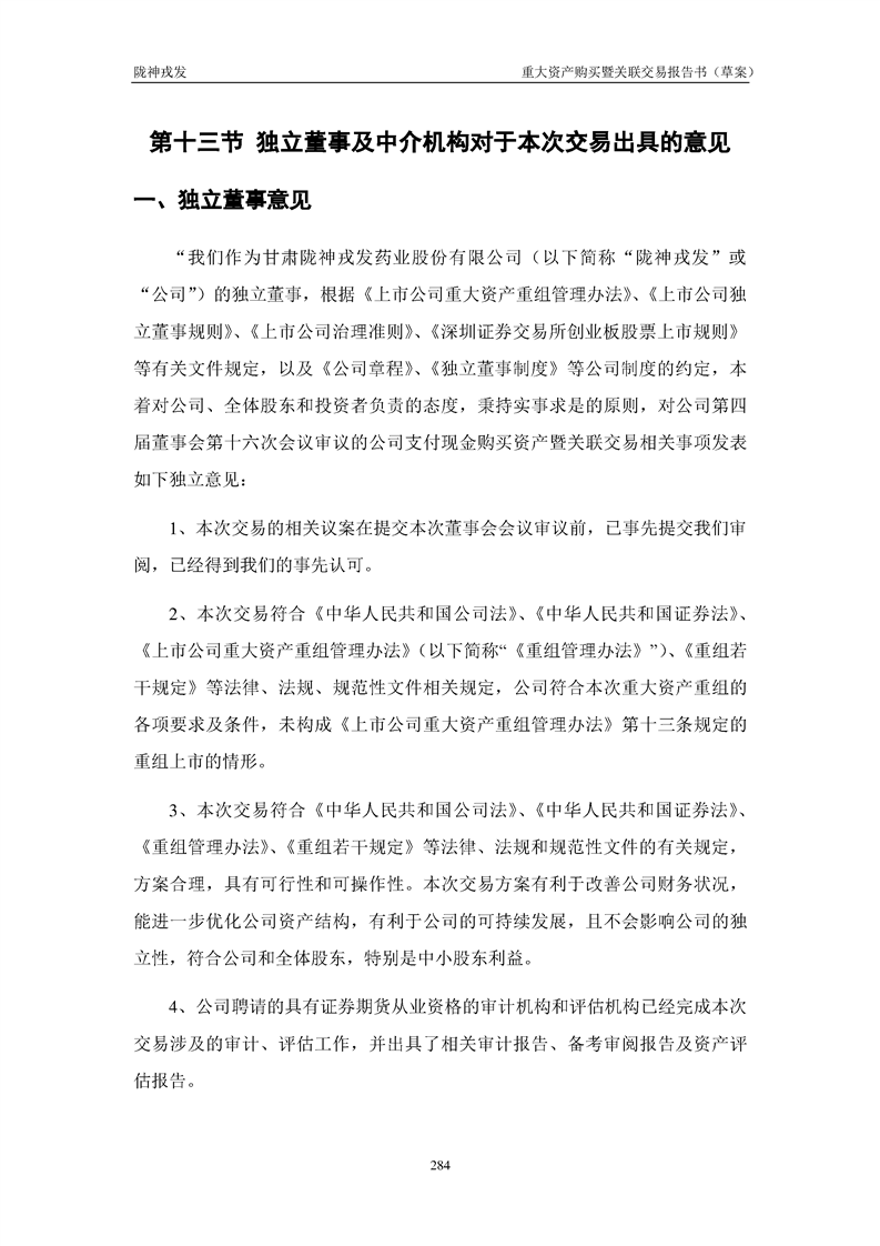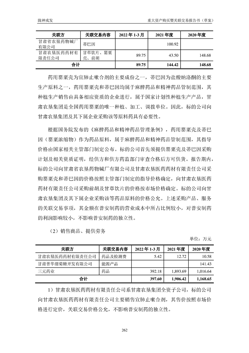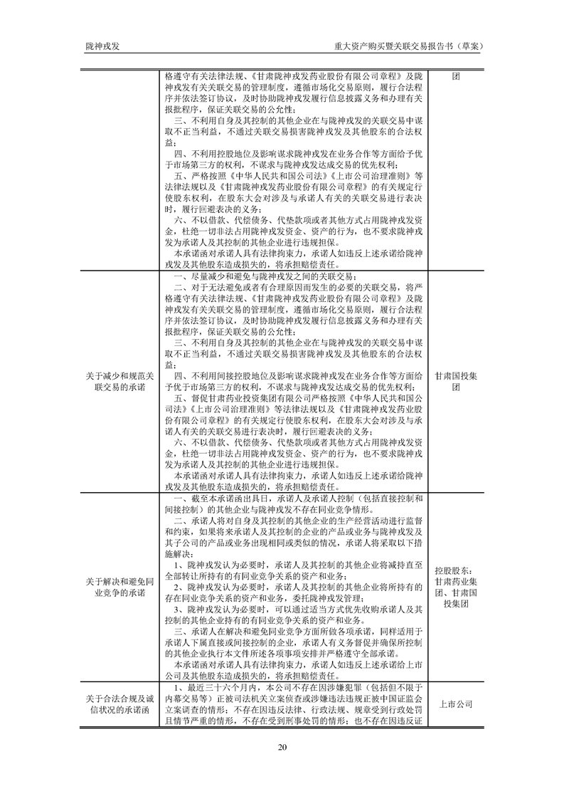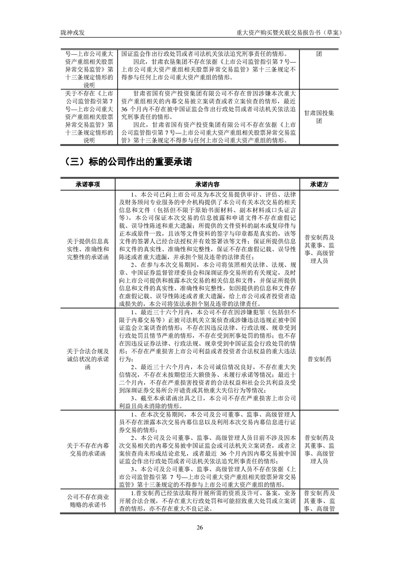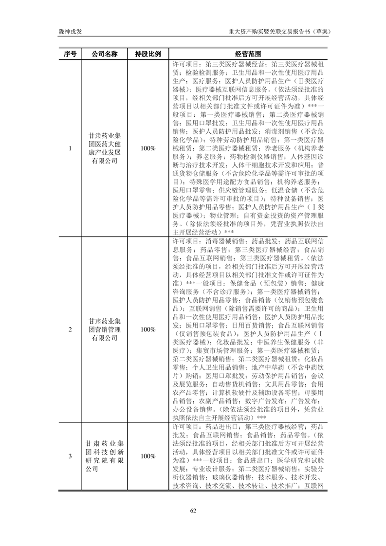 甘肅隴神戎發(fā)藥業(yè)股份有限公司重大資產(chǎn)購(gòu)買暨關(guān)聯(lián)交易報(bào)告書(草案)