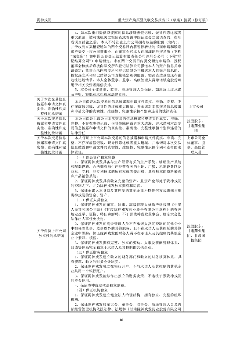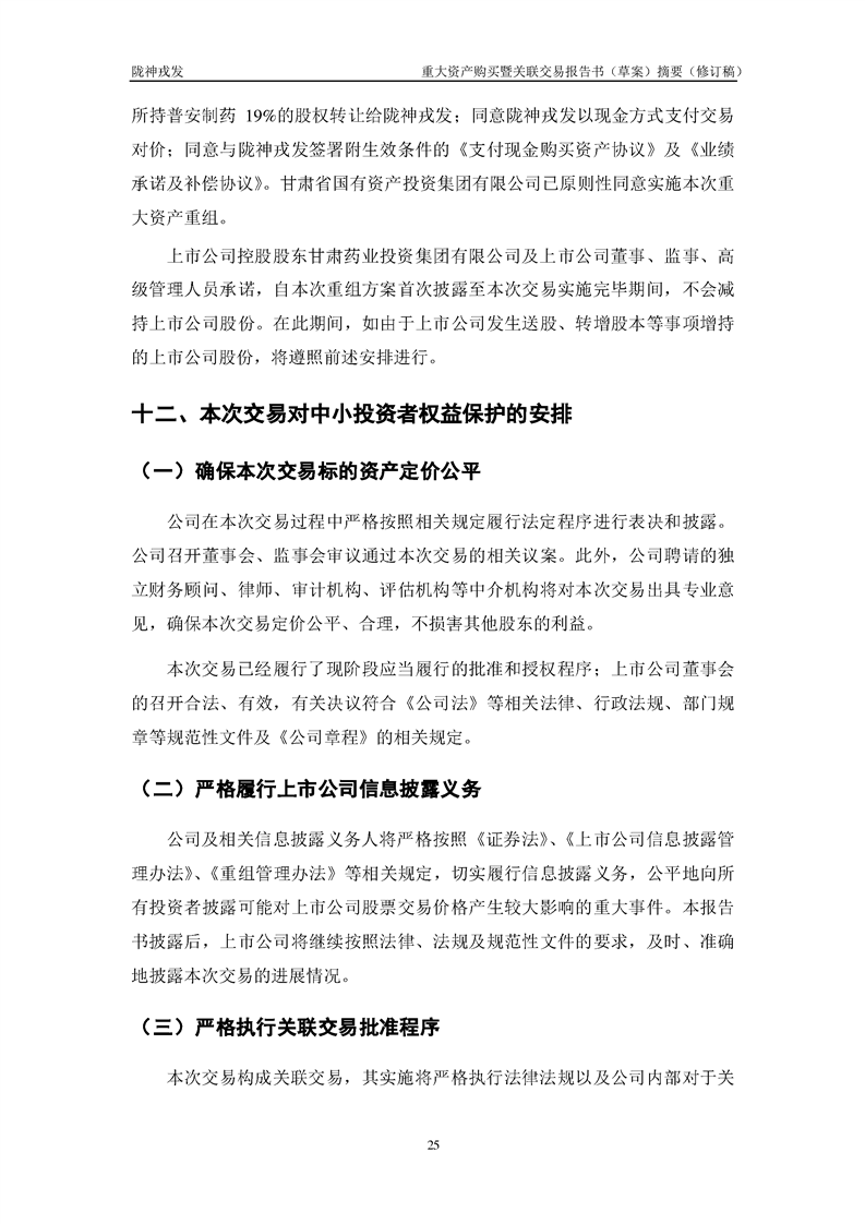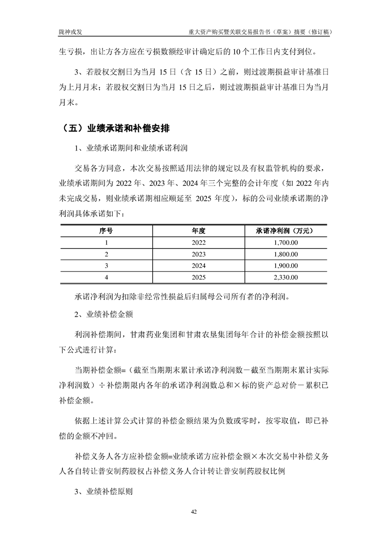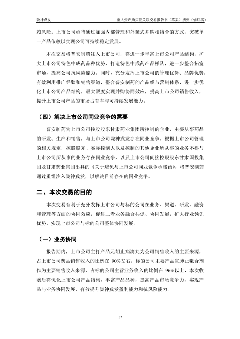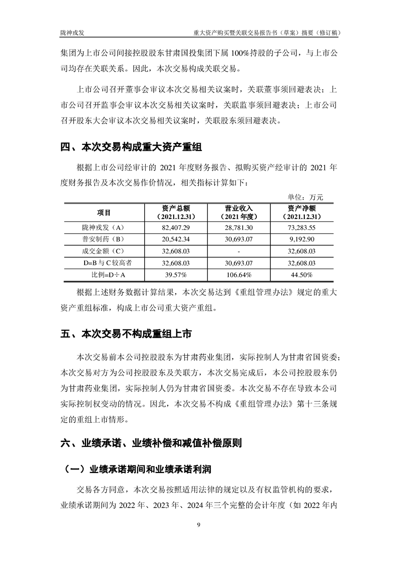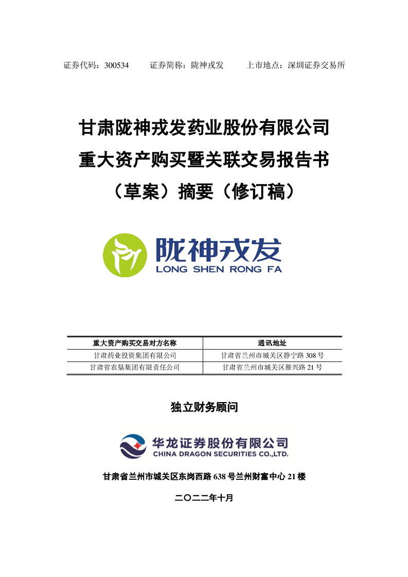 甘肅隴神戎發(fā)藥業(yè)股份有限公司重大資產(chǎn)購買暨關(guān)聯(lián)交易報告書(草案)摘要(修訂稿)