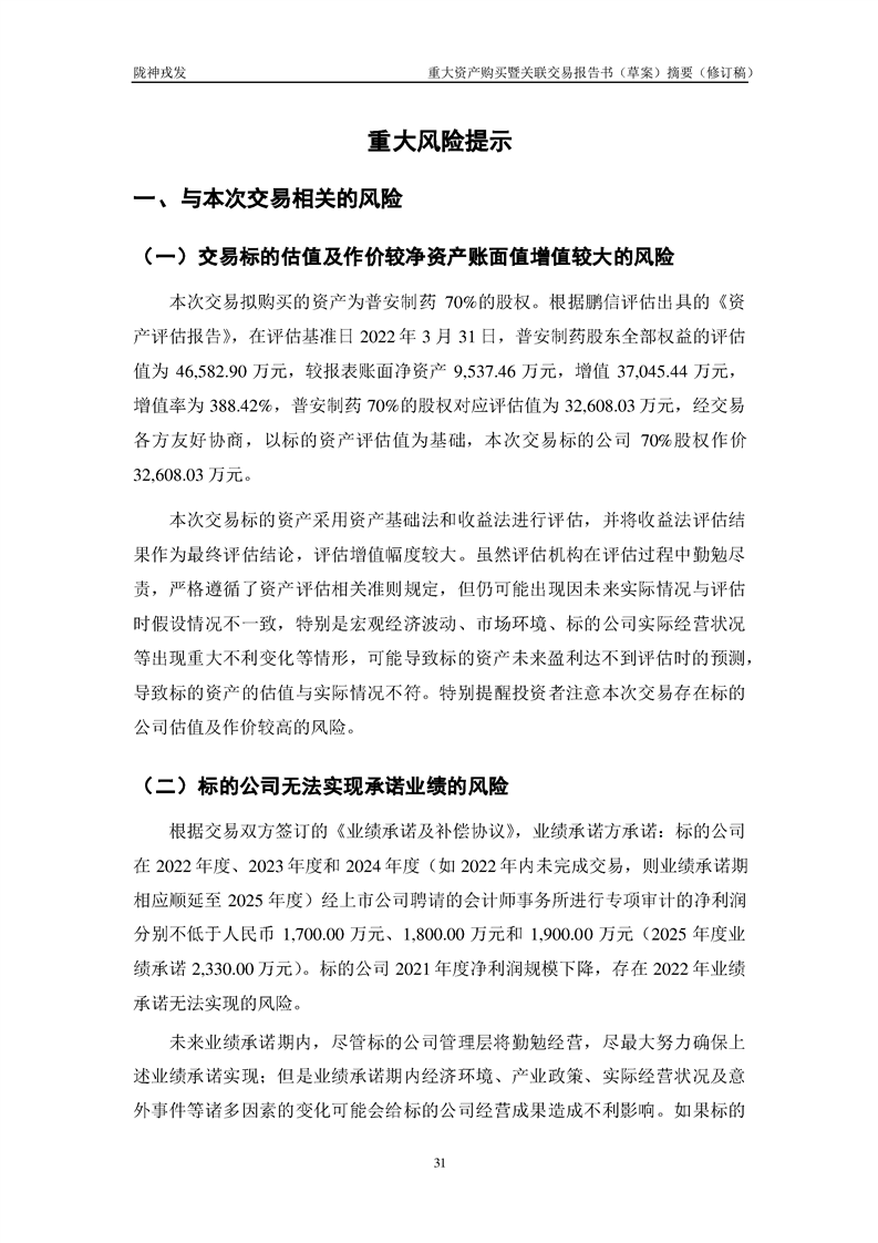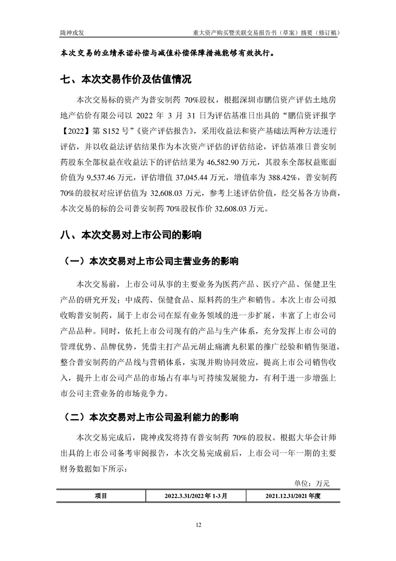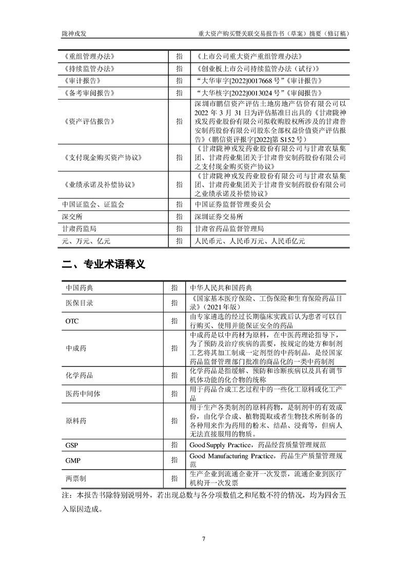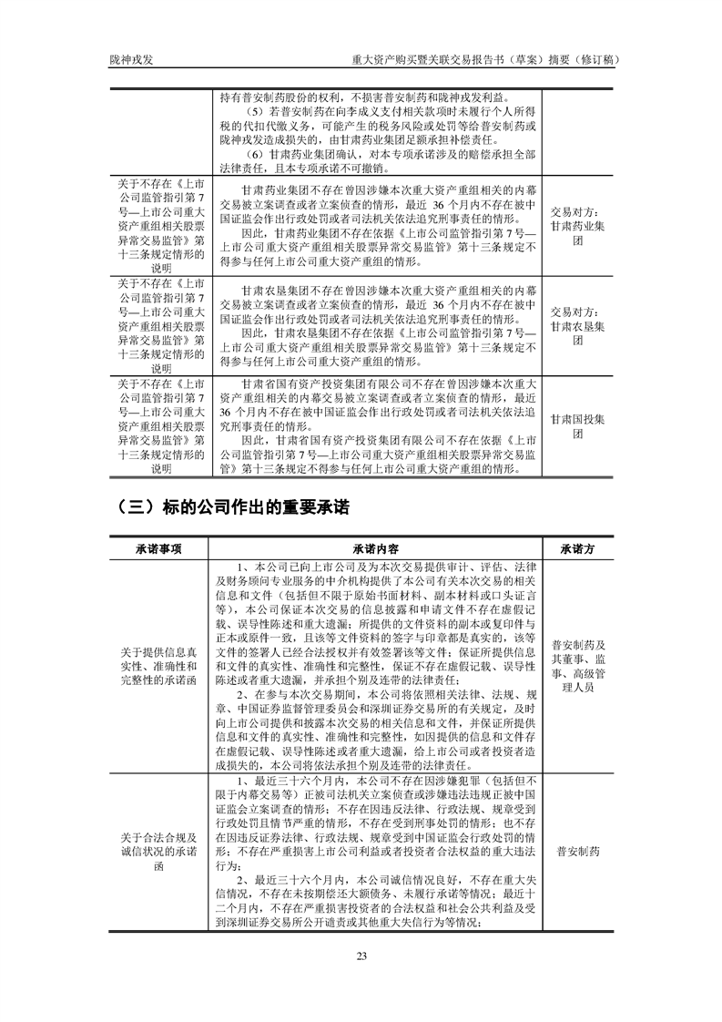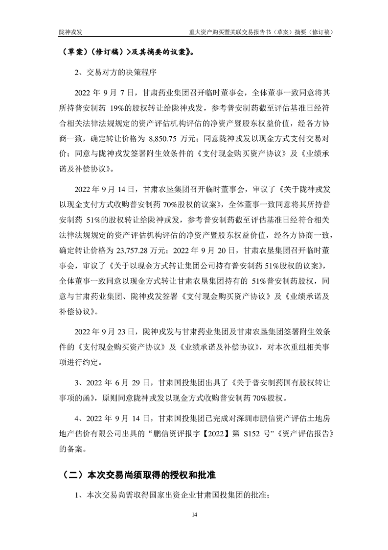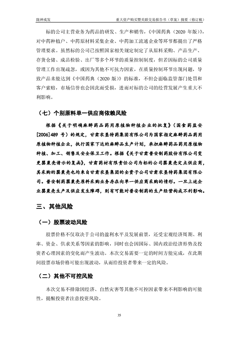 甘肅隴神戎發(fā)藥業(yè)股份有限公司重大資產(chǎn)購買暨關(guān)聯(lián)交易報告書(草案)摘要(修訂稿)