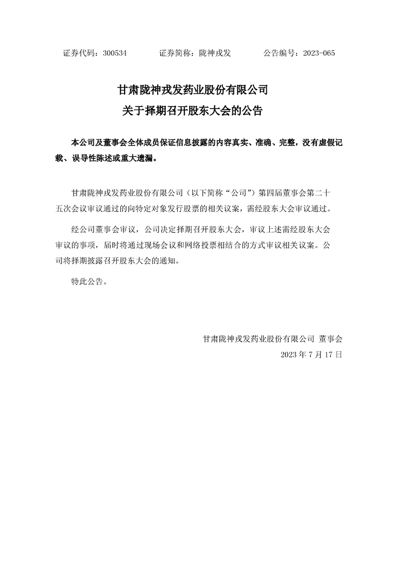 關(guān)于擇期召開(kāi)股東大會(huì)的公告