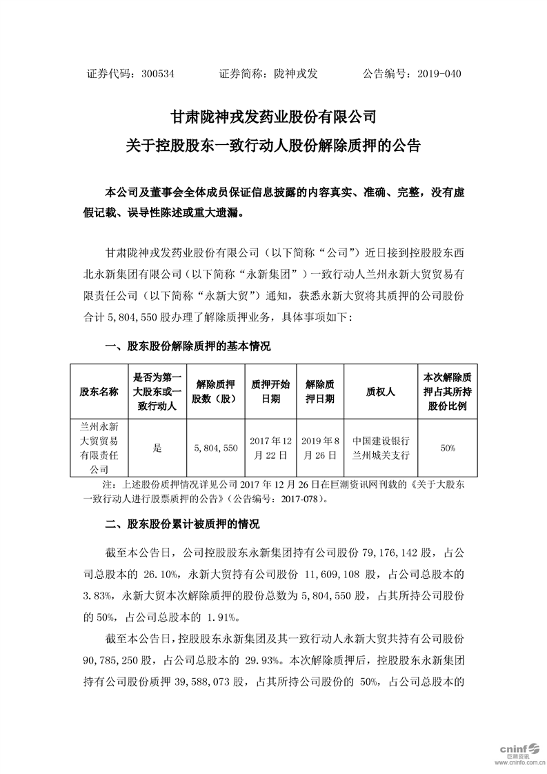 關于控股股東一致行動人股份解除質(zhì)押的公告