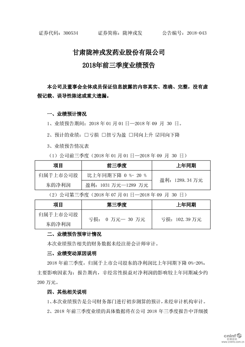 2018年前三季度業(yè)績(jī)預(yù)告