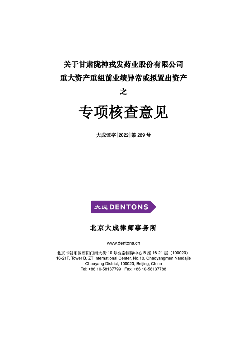 北京大成律師事務(wù)所關(guān)于本次重大資產(chǎn)重組前業(yè)績異常或擬置出資產(chǎn)的專項核查意見