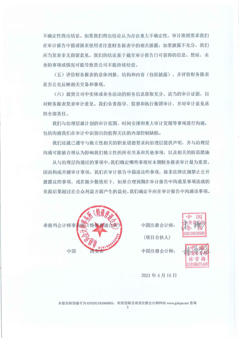 2020年年度審計報告