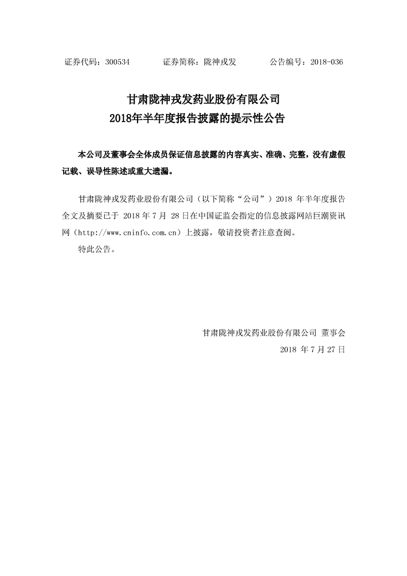 2018年半年度報(bào)告披露的提示性公告