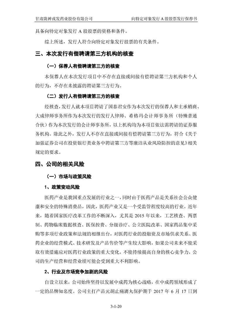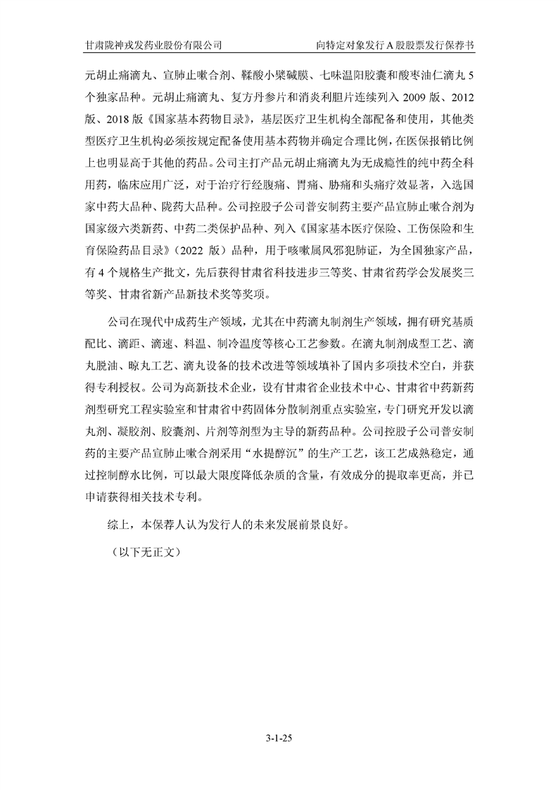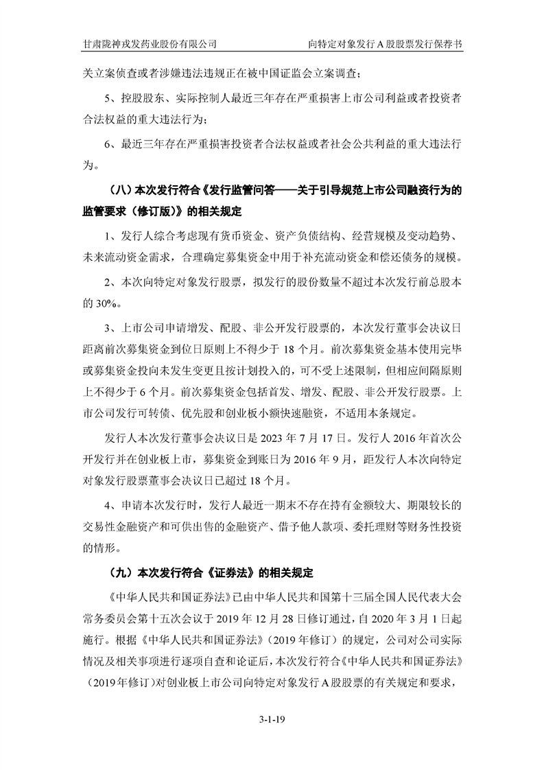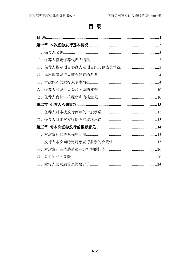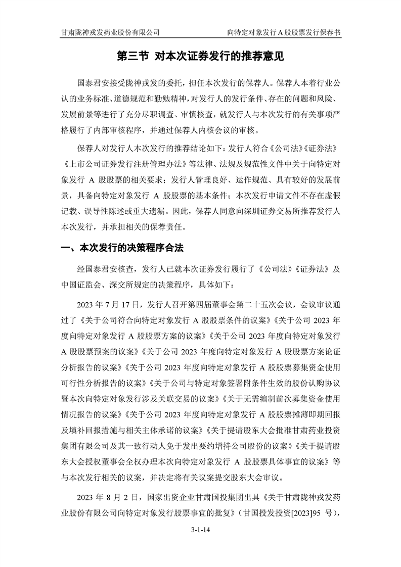 國(guó)泰君安證券股份有限公司關(guān)于甘肅隴神戎發(fā)藥業(yè)股份有限公司向特定對(duì)象發(fā)行A股股票之發(fā)行保薦書