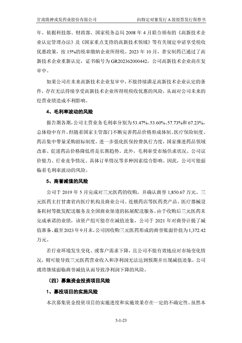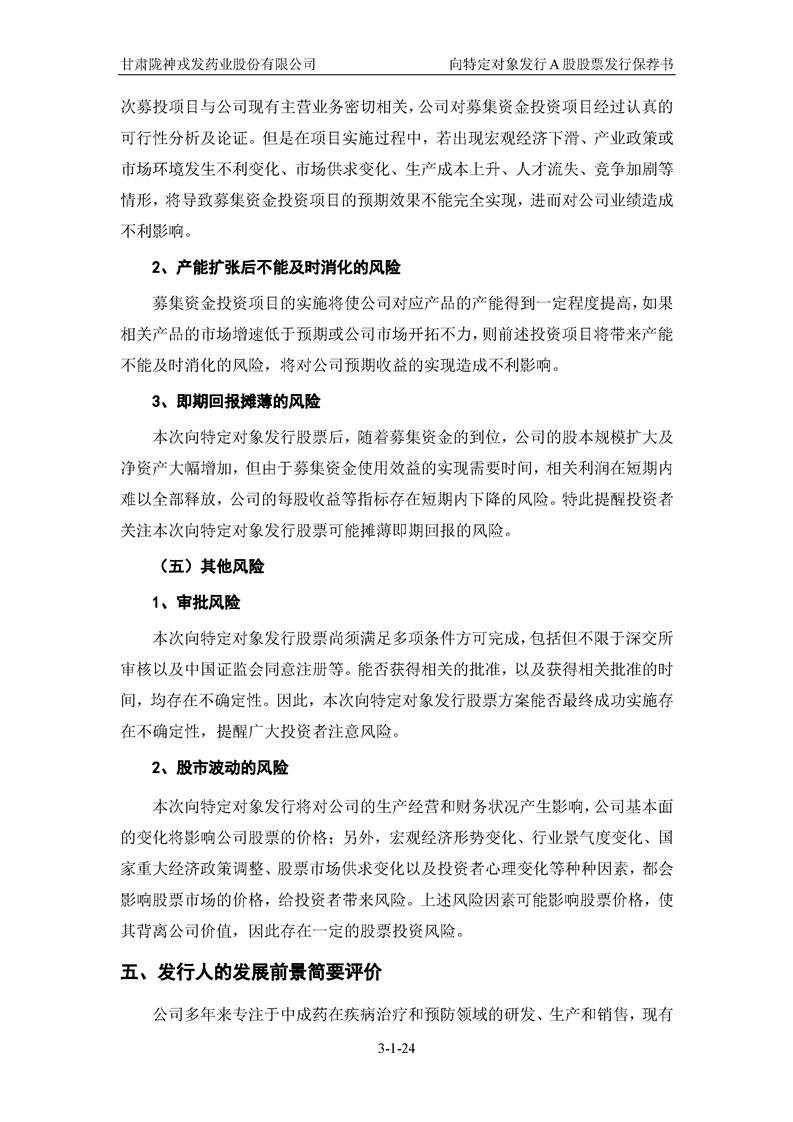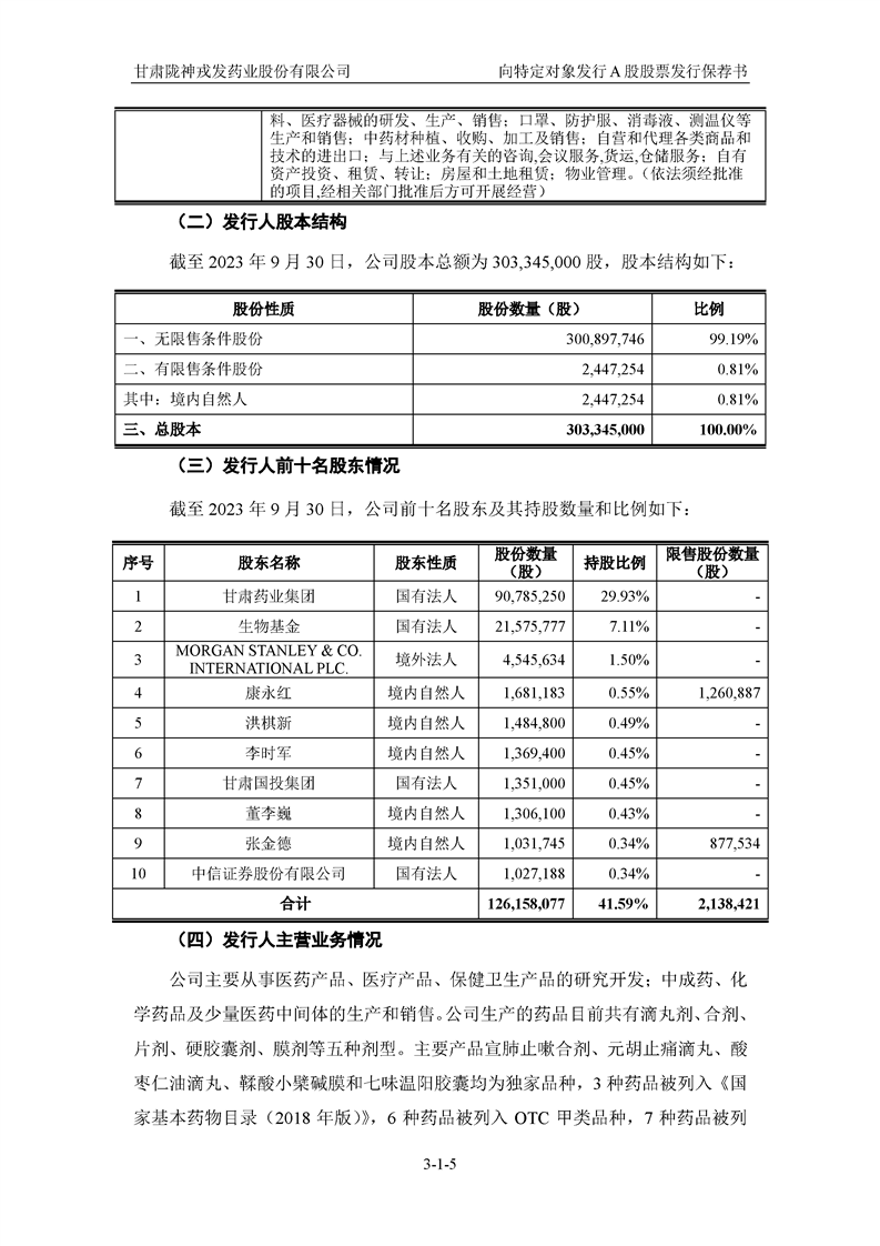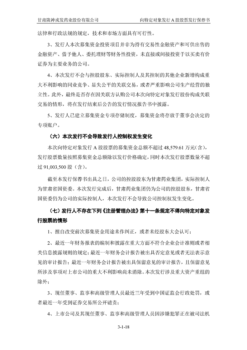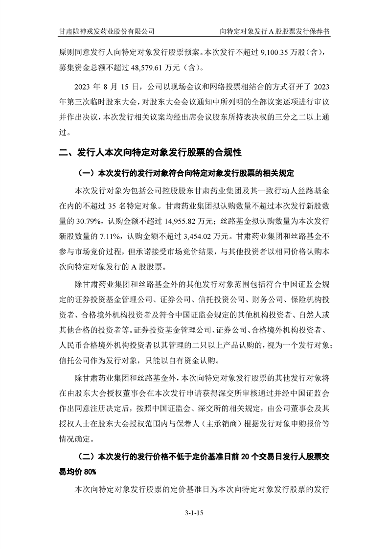 國(guó)泰君安證券股份有限公司關(guān)于甘肅隴神戎發(fā)藥業(yè)股份有限公司向特定對(duì)象發(fā)行A股股票之發(fā)行保薦書