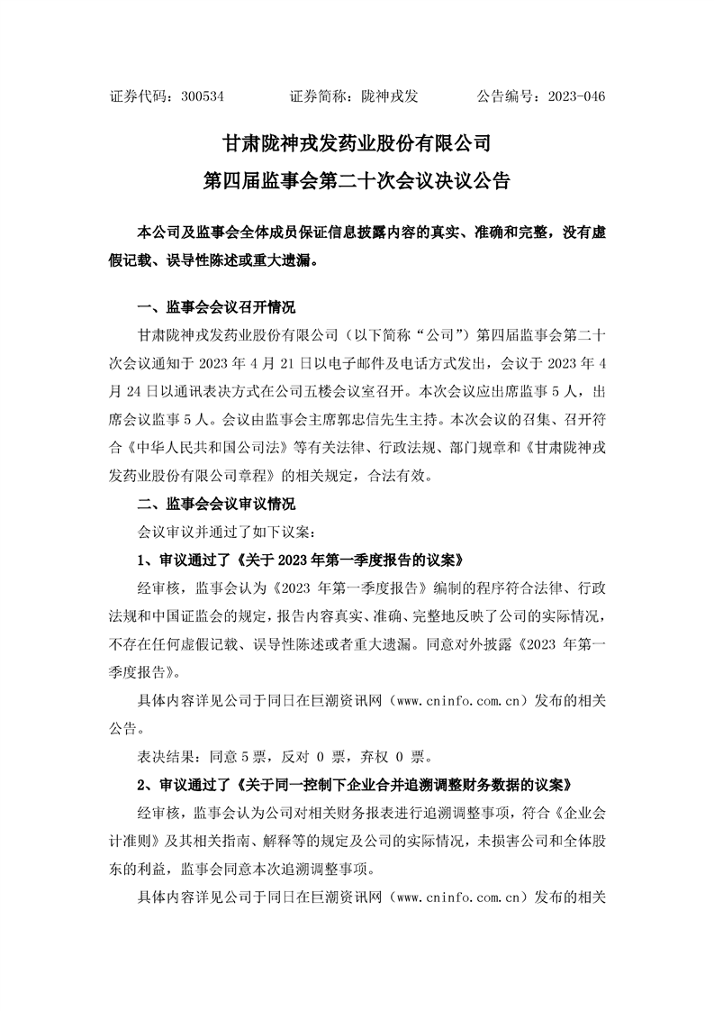 第四屆監(jiān)事會第二十次會議決議公告