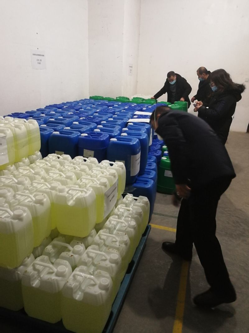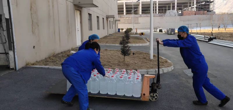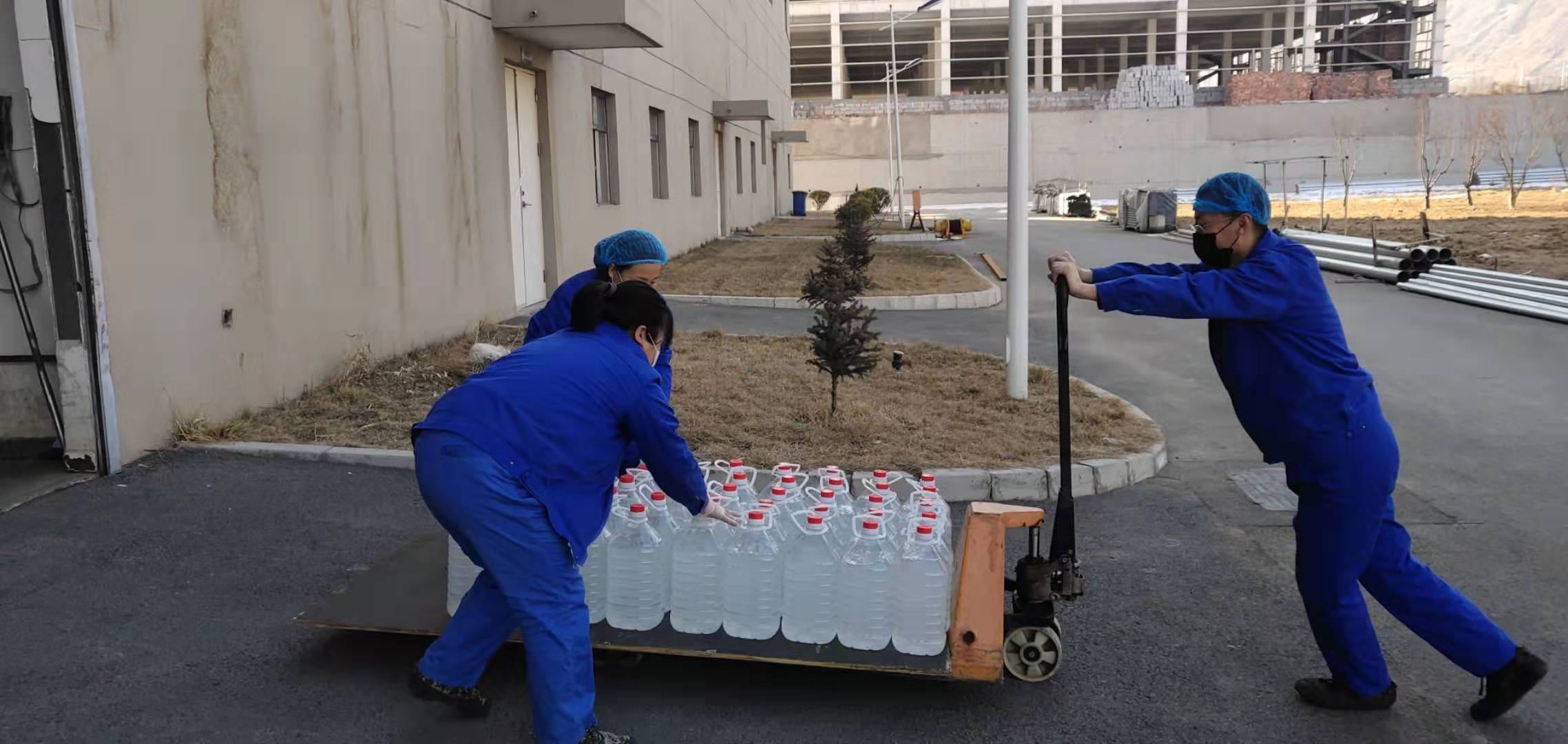 隴神戎發(fā)生產(chǎn)一線員工緊急配制75%酒精,用于疫情防控