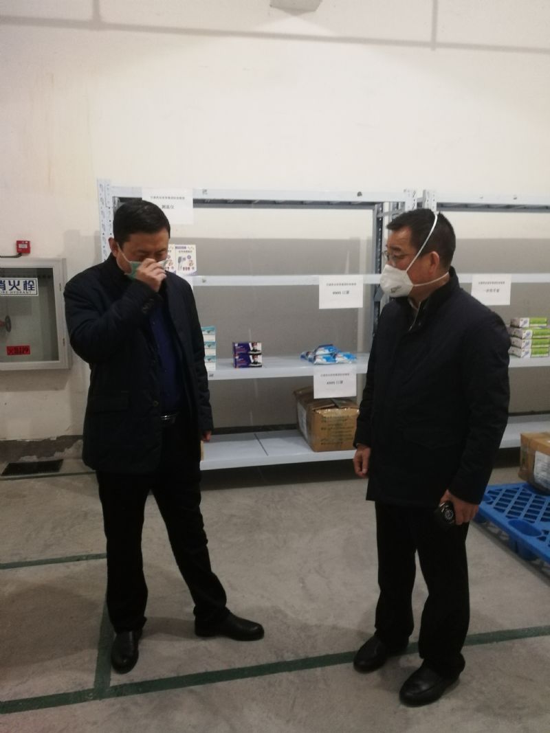 甘肅藥業(yè)集團黨委委員、副總經(jīng)理兼隴神戎發(fā)董事長康海軍視察三元藥業(yè)防控物資儲備消毒用品