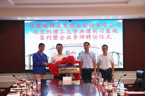 2020年7月3日上午,甘肅隴神戎發(fā)藥業(yè)股份有限公司與蘭州理工大學(xué)大學(xué)共建實(shí)習(xí)基地在隴神戎發(fā)正式揭牌設(shè)立。蘭州理工大學(xué)生命科學(xué)與工程學(xué)院院長黨委書記陳永泰、副院長任海偉,隴神戎發(fā)黨委書記、總經(jīng)理康永紅,黨委專職副書記張金德共同為實(shí)習(xí)基地揭牌。副總經(jīng)理兼董事會秘書元勤輝主持揭牌儀式。隴神戎發(fā)副總經(jīng)理、財務(wù)總監(jiān)張帆,副總經(jīng)理錢雙喜,總工程師鄧月婷,蘭州理工大學(xué)生命科學(xué)與工程學(xué)院制藥工程系主任楊林及部分老師,公司在職部分校友出席了此次儀式。