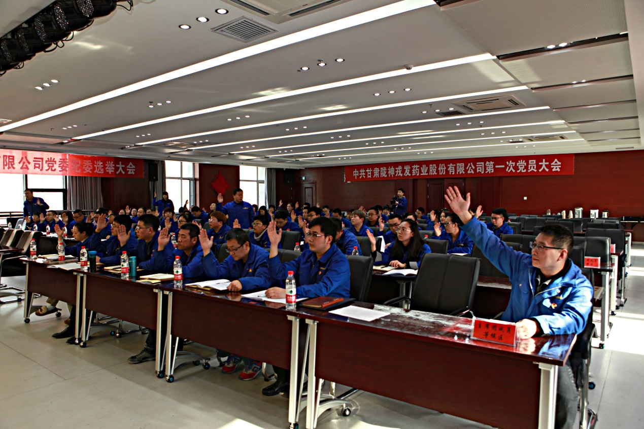 2019年3月14日,甘肅隴神戎發(fā)藥業(yè)股份有限公司第一次黨員大會暨黨委、紀委選舉大會圓滿完成各項議程勝利閉幕。公司全體黨員和特邀人員共90余人參加大會。此次大會邀請西北永新集團黨委書記、董事長康海軍,黨委副書記、紀委書記成炳彥,黨委組織部部長、人力資源部部長王宏武,黨委宣傳部部長、黨委辦公室副主任李生祥等領(lǐng)導(dǎo)蒞臨會議現(xiàn)場指導(dǎo)。