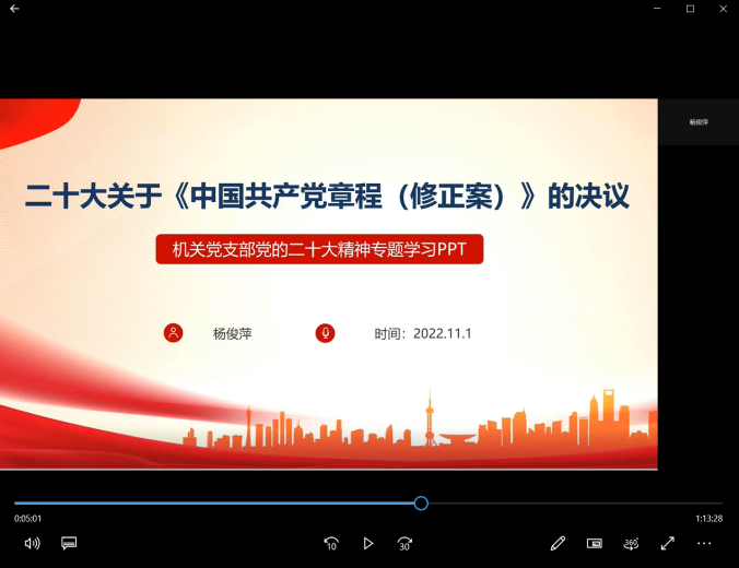 11月1日,隴神戎發(fā)機(jī)關(guān)黨支部以騰訊會(huì)議形式開展11月主題黨日活動(dòng),專題學(xué)習(xí)黨的二十大精神。