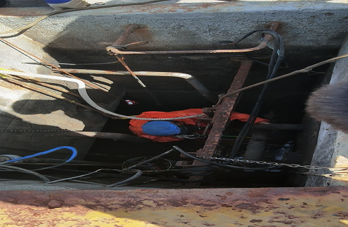 清理完污水池后,設(shè)備工程部對部分設(shè)備設(shè)施進(jìn)行維修更換,面對刺鼻的氣味和空間狹小、天氣熱的困難,設(shè)備工程部從領(lǐng)導(dǎo)干部到普通職工,大家爭先表達(dá)出下井作業(yè)的強(qiáng)烈意愿。但考慮到安全因素,還是決定由受過安全培訓(xùn)且更有經(jīng)驗(yàn)的人員來實(shí)施。黨員干部王洋身先士卒,帶領(lǐng)袁國田、陳振剛交替下井作業(yè)。炎炎烈日下,剩下的人也加入到協(xié)助下井維修的隊(duì)伍當(dāng)中,有幫著遞工具的,有幫著遞水的,有幫著下井人員穿防護(hù)服的,大家齊心協(xié)力,互幫互助,攻堅(jiān)克難,圓滿順利的完成了這次頗具挑戰(zhàn)的維修任務(wù)。