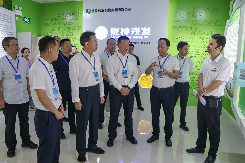 贠建民副主席一行首先在企業(yè)產(chǎn)品展廳進(jìn)行參觀,了解藥業(yè)集團(tuán)和隴神戎發(fā)的發(fā)展歷程、企業(yè)改制上市和完成普安制藥并購(gòu)后業(yè)績(jī)?nèi)嫣嵘惹闆r,以及公司元胡止痛滴丸、宣肺止嗽合劑、鞣酸小檗堿膜、七味溫陽膠囊等全國(guó)獨(dú)家品種生產(chǎn)研發(fā)情況。隨后前往滴丸車間和合劑車間生產(chǎn)線現(xiàn)場(chǎng)觀摩,直觀了解產(chǎn)品的生產(chǎn)過程,最后前往公司七樓質(zhì)檢研發(fā)中心,現(xiàn)場(chǎng)了解公司科研力量、產(chǎn)品研發(fā)、質(zhì)量檢測(cè)等情況。