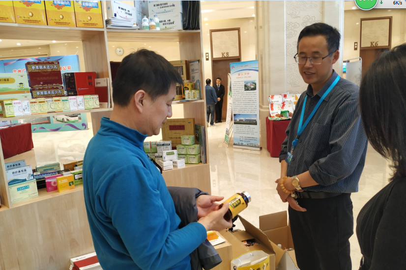 隴神戎發(fā)黨委副書記(專職)張金德向參會(huì)單位推介公司保健品當(dāng)歸黃芪膠囊