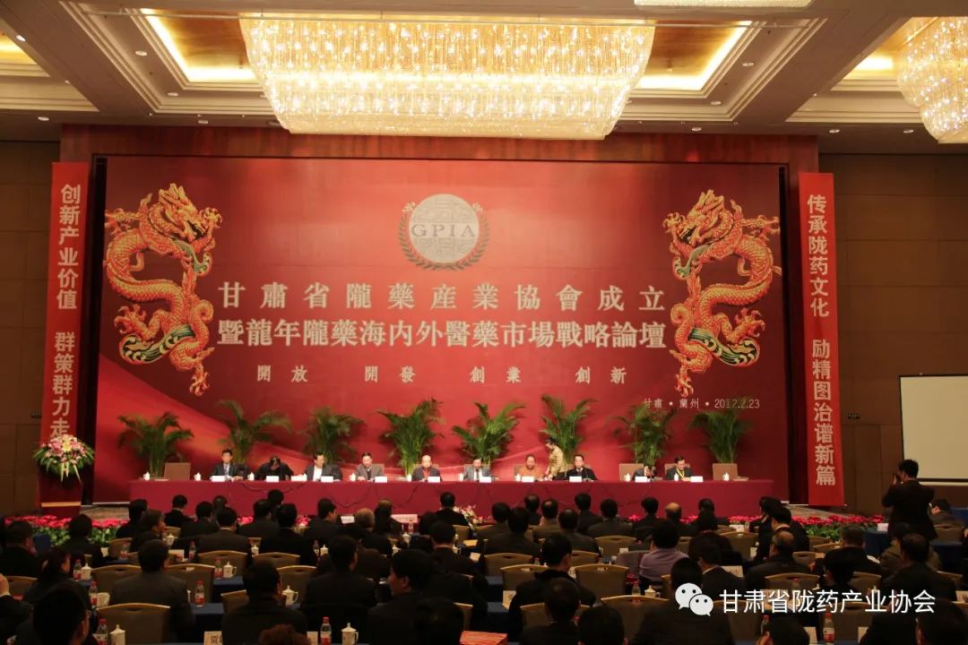 2012年2月23日,“甘肅省隴藥產(chǎn)業(yè)協(xié)會成立大會暨龍年隴藥海內(nèi)外醫(yī)藥市場戰(zhàn)略論壇”在蘭州召開,以開展隴藥產(chǎn)業(yè)發(fā)展協(xié)調(diào)服務(wù)為目標(biāo)的甘肅省隴藥產(chǎn)業(yè)協(xié)會正式成立,意味著中國醫(yī)藥史上曾占據(jù)重要歷史地位的隴藥產(chǎn)業(yè)吹響了全面復(fù)興的號角。來自國內(nèi)外近百名著名醫(yī)藥商會、協(xié)會負(fù)責(zé)人,以及67家甘肅醫(yī)藥企業(yè)匯集一堂,共商隴藥產(chǎn)業(yè)發(fā)展大計。