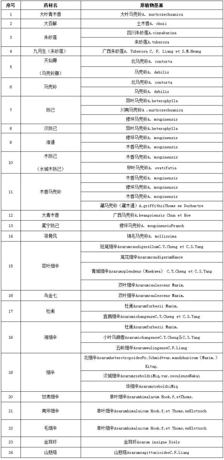1.關(guān)木通、青木香、廣防己的藥材標(biāo)準(zhǔn)已撤銷,故未列入。