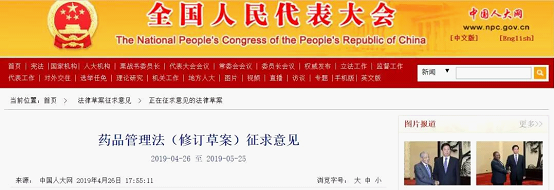 4月26日下午,中國(guó)人大網(wǎng)發(fā)布“藥品管理法(修訂草案)征求意見”,征求意見日期為4月26日-5月25日。