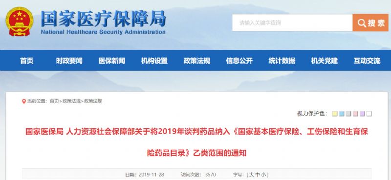 鏈接:關(guān)于將2019年談判藥品納入《國家基本醫(yī)療保險、工傷保險和生育保險藥品目錄》乙類范圍的通知 政策解讀