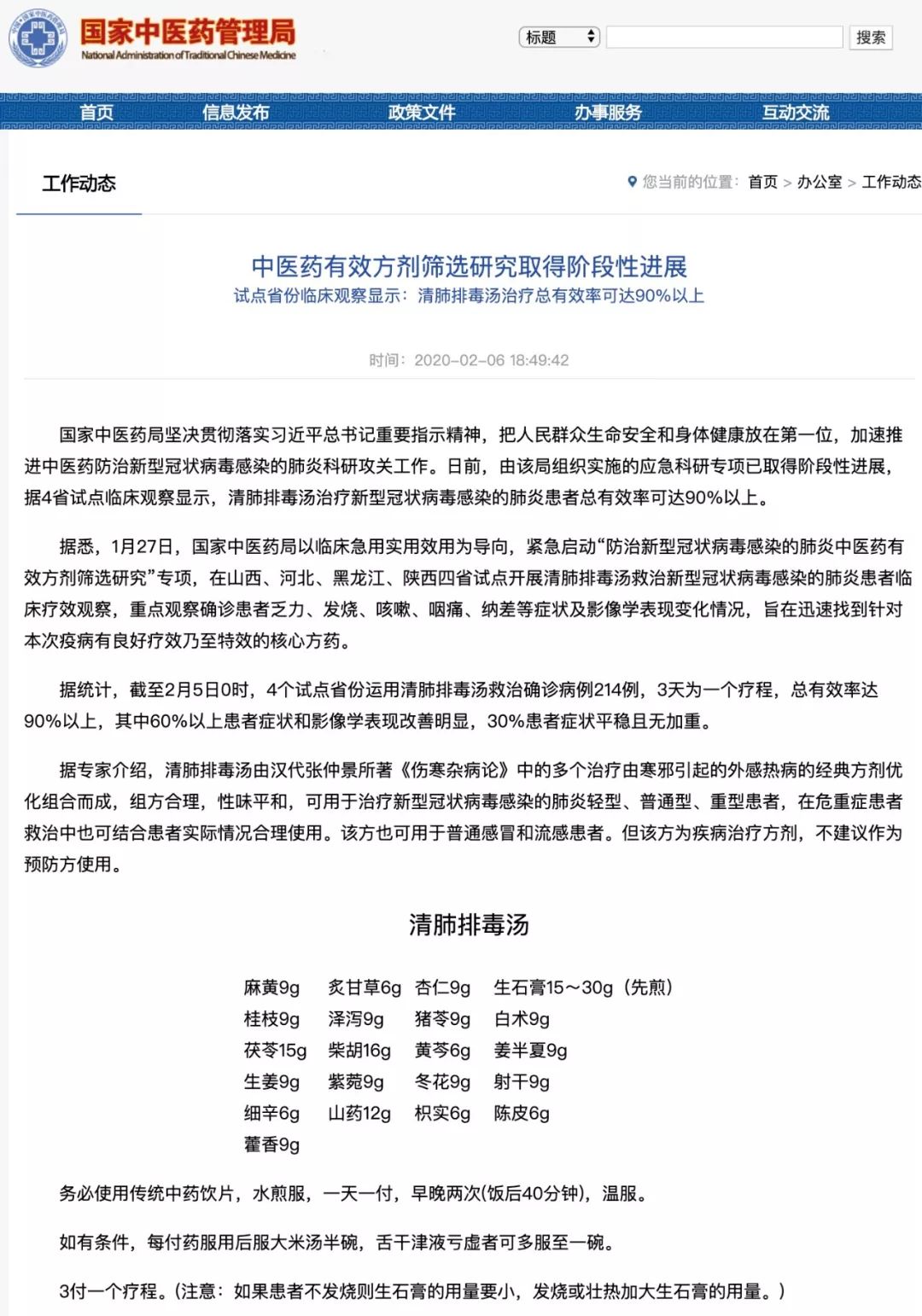 2月6日,國家中醫(yī)藥管理局發(fā)布了《中醫(yī)藥有效方劑篩選研究取得階段性進(jìn)展》。