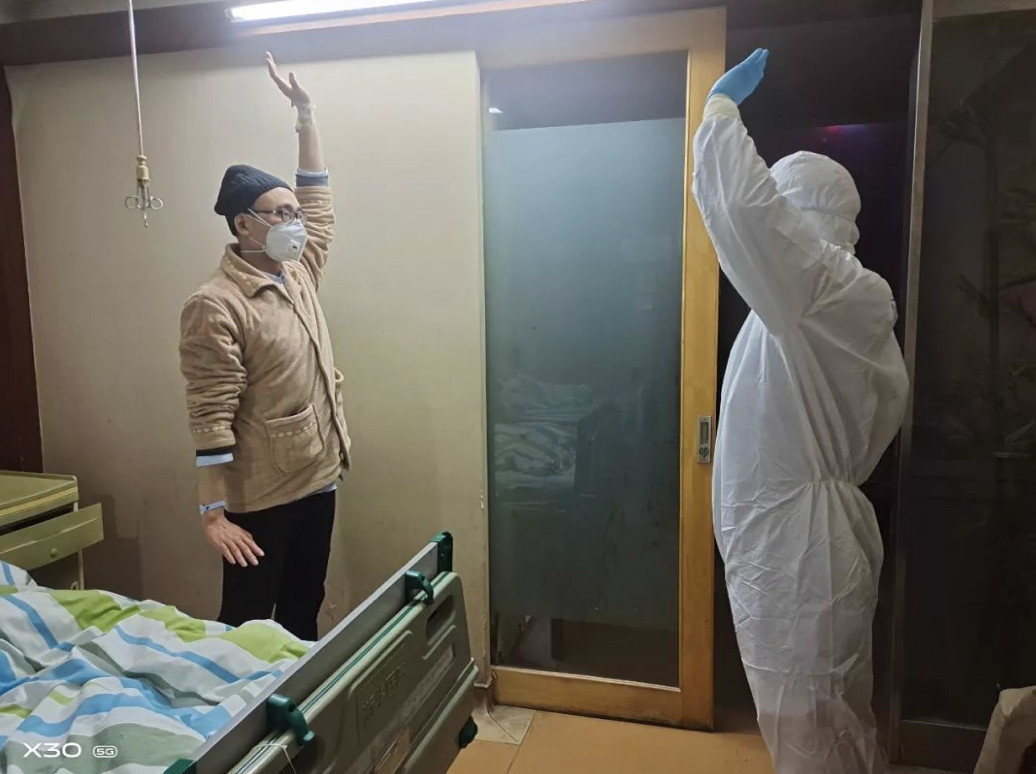 武漢患者在中醫(yī)指導(dǎo)下練習(xí)八段錦進(jìn)行康復(fù)