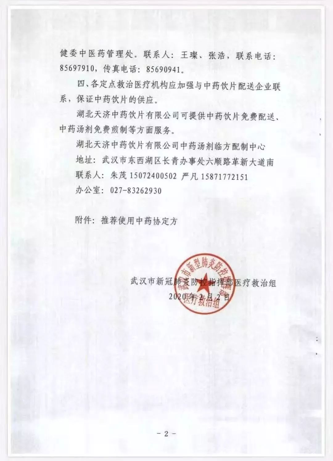 2月2日,武漢市新冠肺炎指揮醫(yī)療救治組發(fā)布了更新的中藥協(xié)定方案。看下圖。