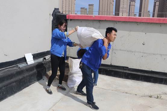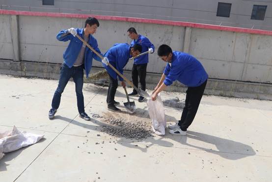 廠區(qū)樓頂?shù)哪嗤?、石子、塑料等下雨天被雨水沖刷后,容易堵塞樓頂排水口,存在安全隱患。所以此次清理活動(dòng),主要針對(duì)樓頂環(huán)境衛(wèi)生、衛(wèi)生死角進(jìn)行了集中清理?;顒?dòng)開始后團(tuán)總支將已準(zhǔn)備好的鐵鍬、簸箕、掃帚等工具分發(fā)到各小組,所有人登上樓頂,發(fā)揮不怕苦、臟、累的精神,積極地清理石子、泥土、雜物等垃圾。利用廢棄的編織袋來(lái)裝運(yùn),即節(jié)省了物資,又能二次利用。