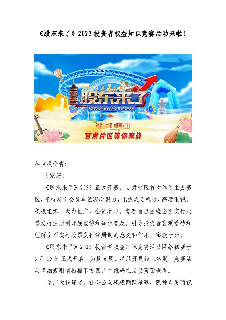 《股東來了》2023投資者權(quán)益知識競賽活動來啦!