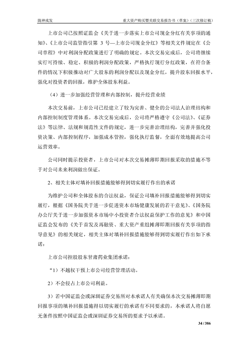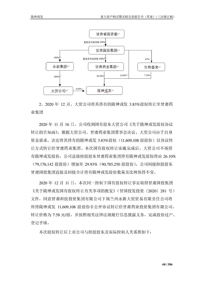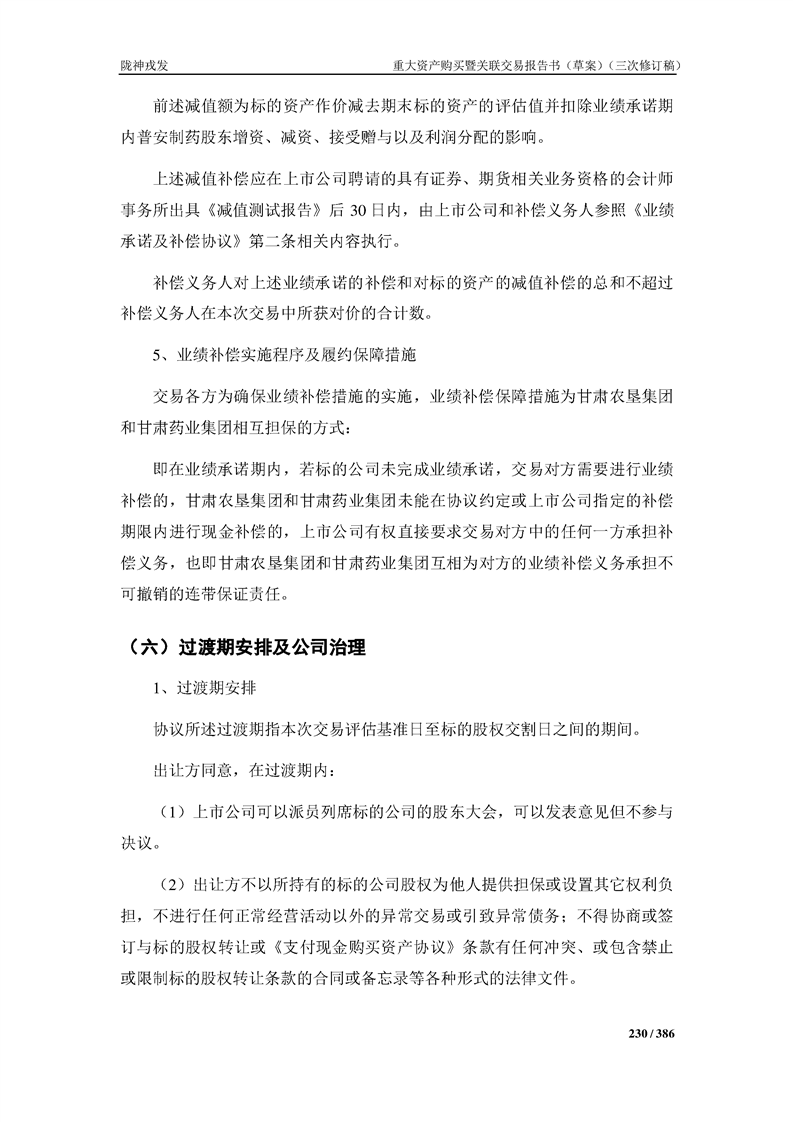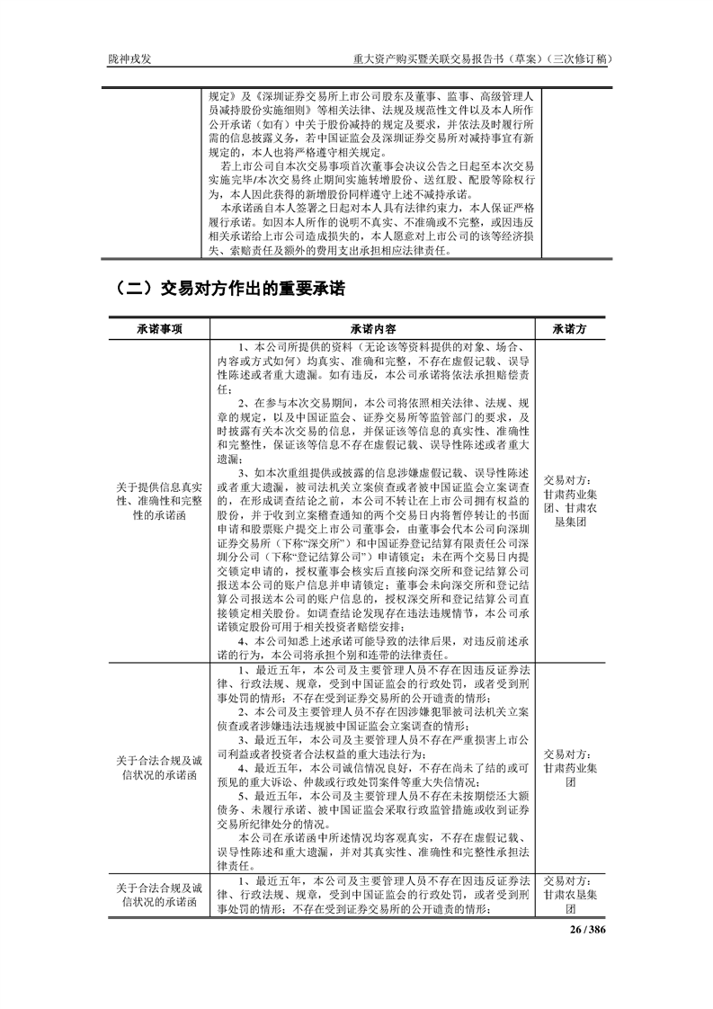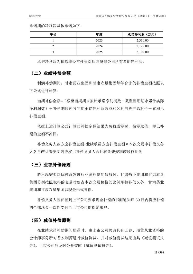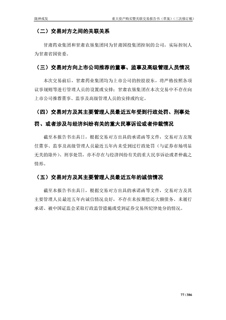 甘肅隴神戎發(fā)藥業(yè)股份有限公司重大資產(chǎn)購買暨關(guān)聯(lián)交易報告書(草案)(三次修訂稿)