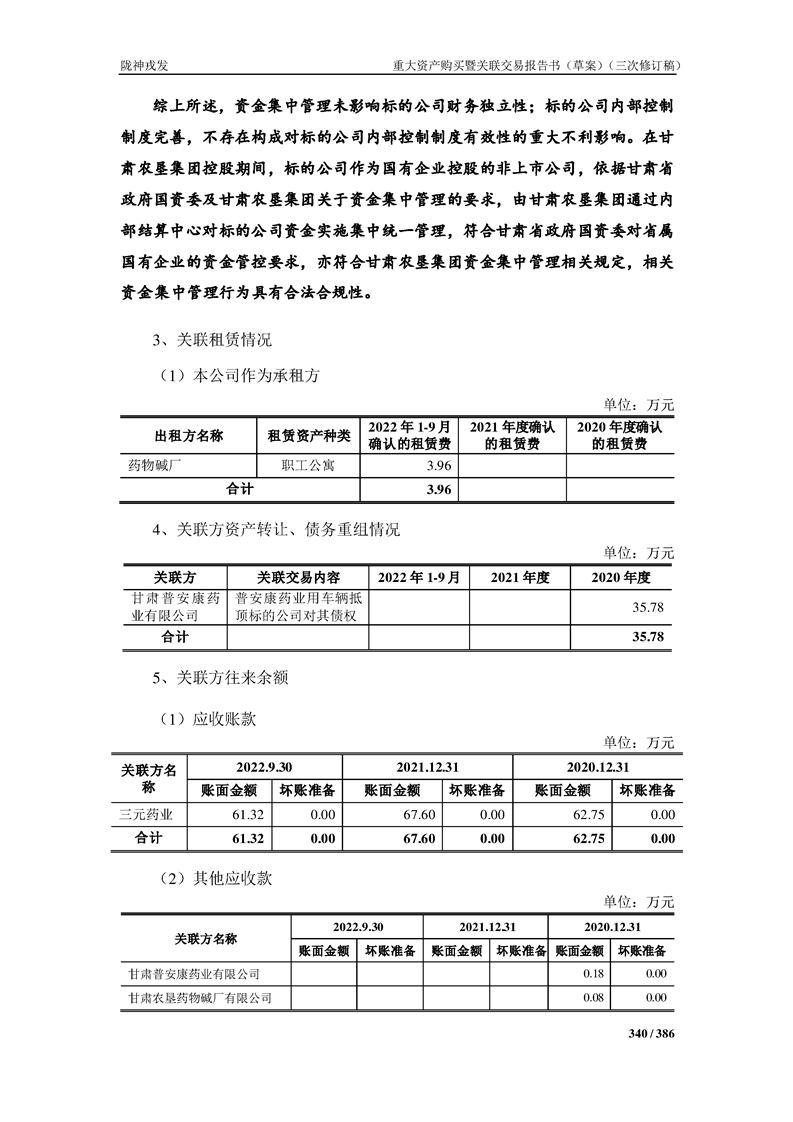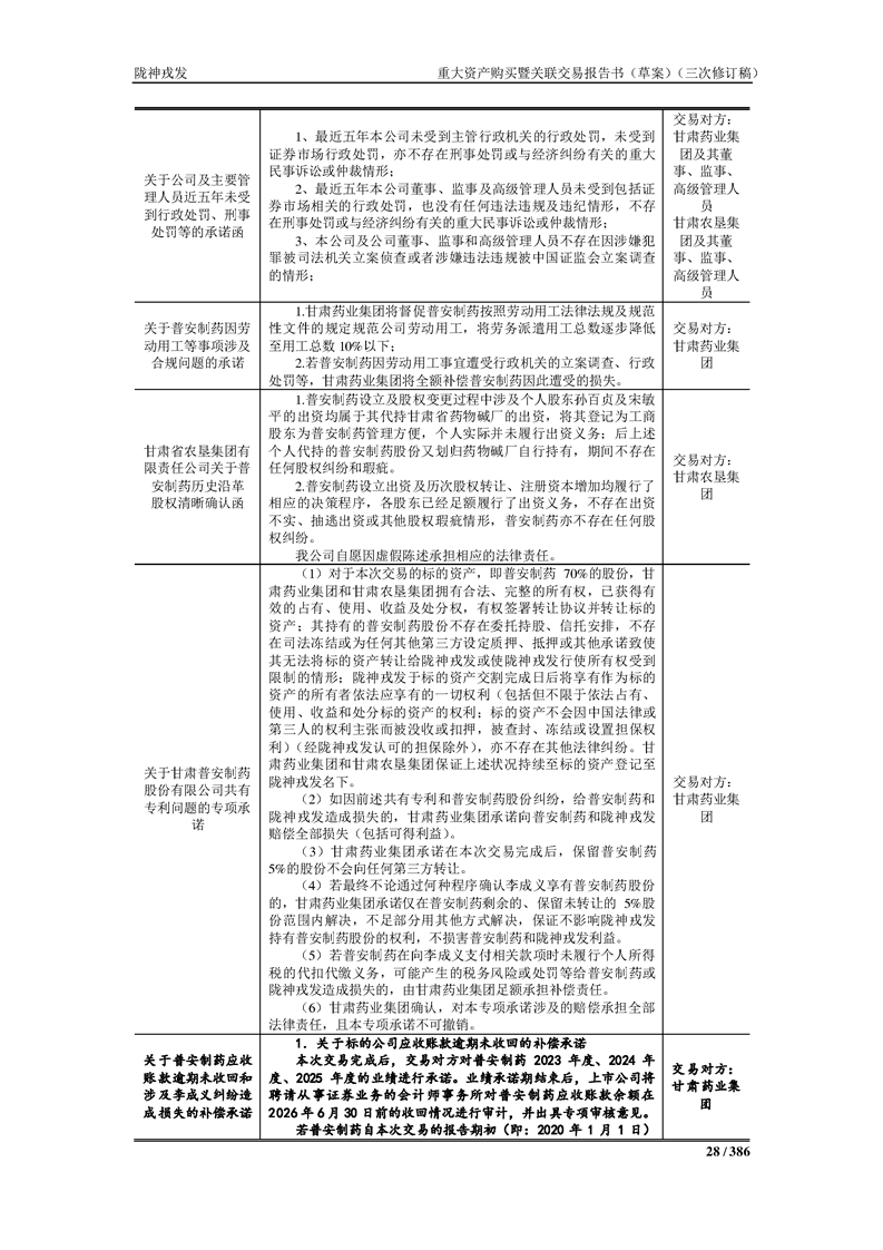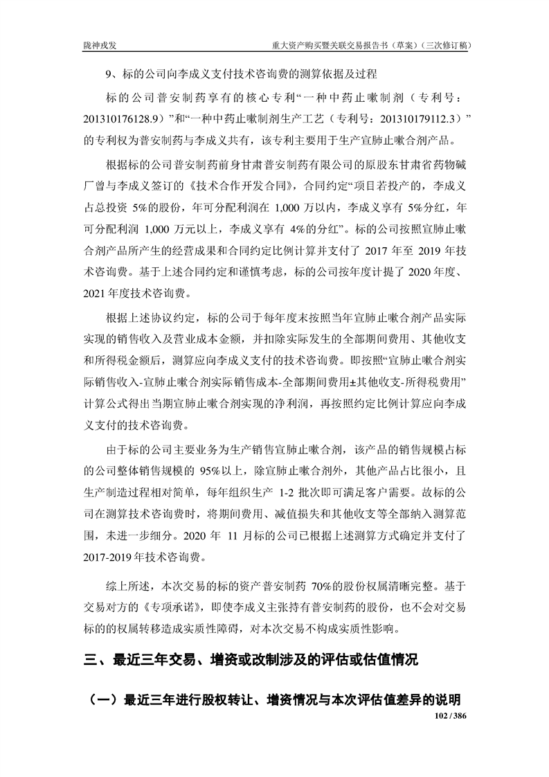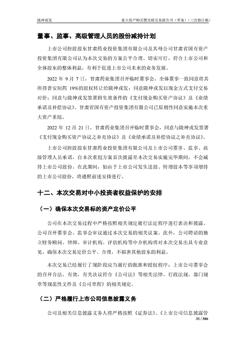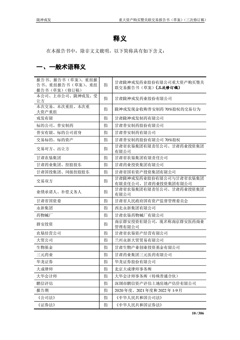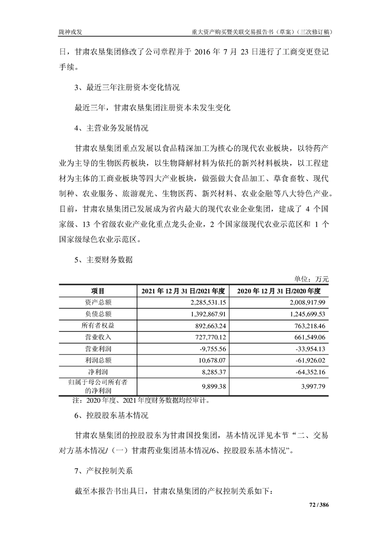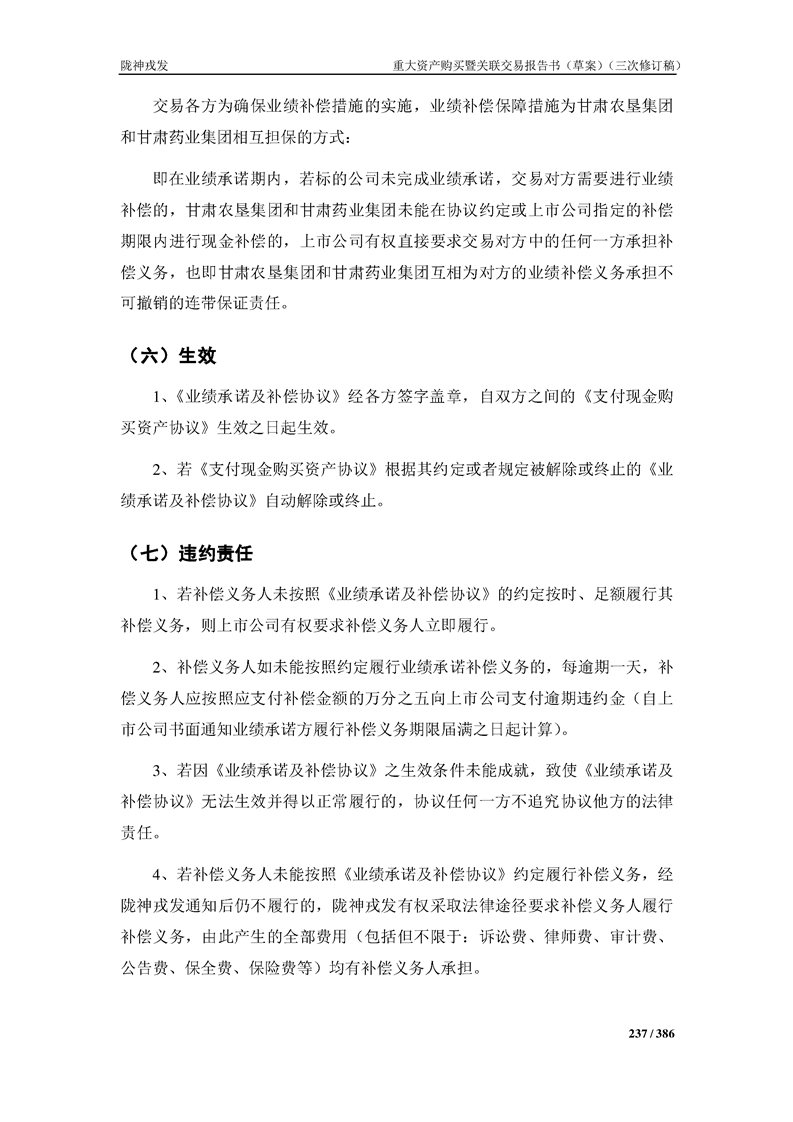 甘肅隴神戎發(fā)藥業(yè)股份有限公司重大資產(chǎn)購買暨關(guān)聯(lián)交易報告書(草案)(三次修訂稿)