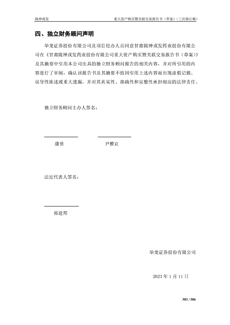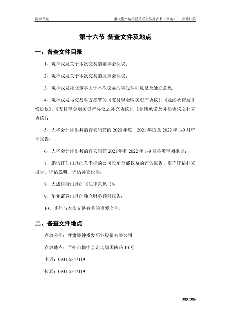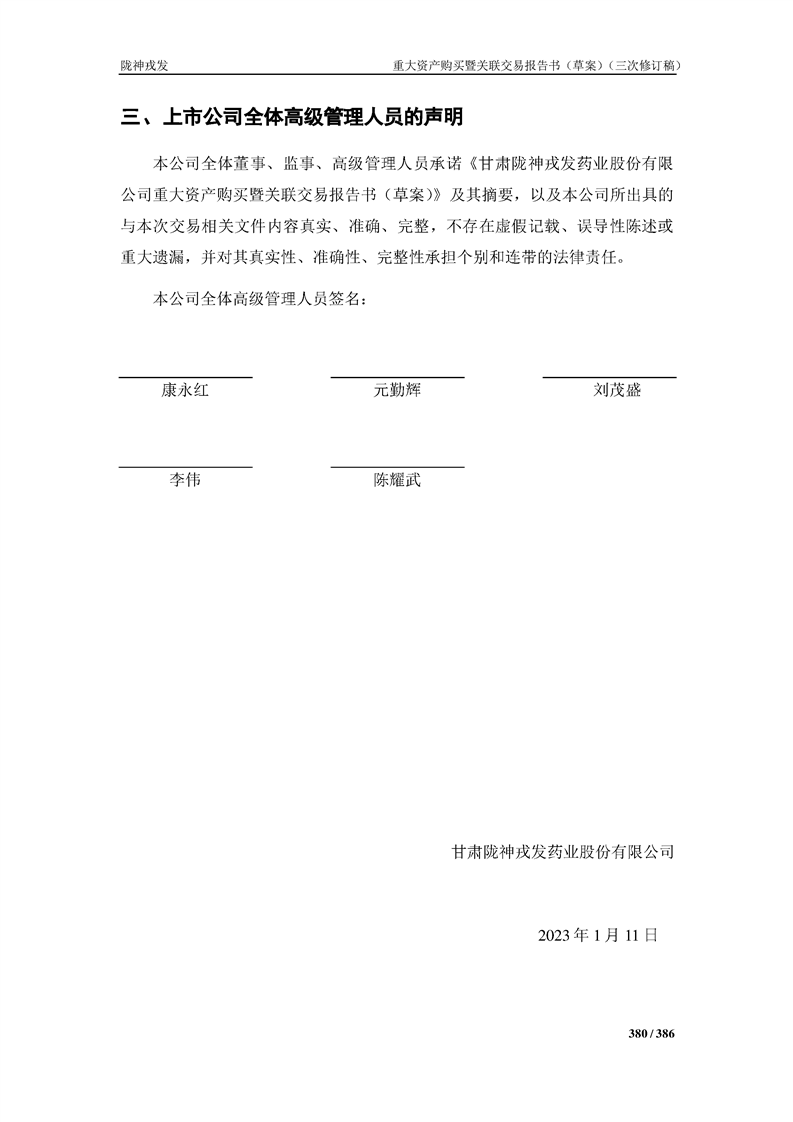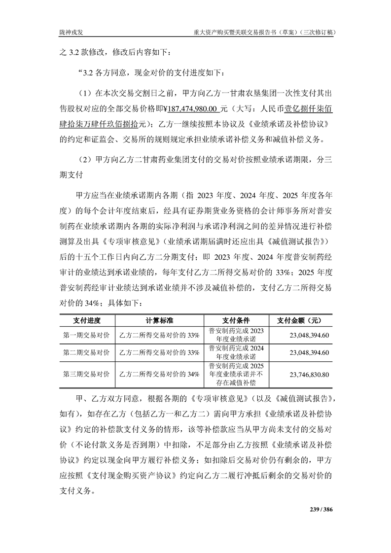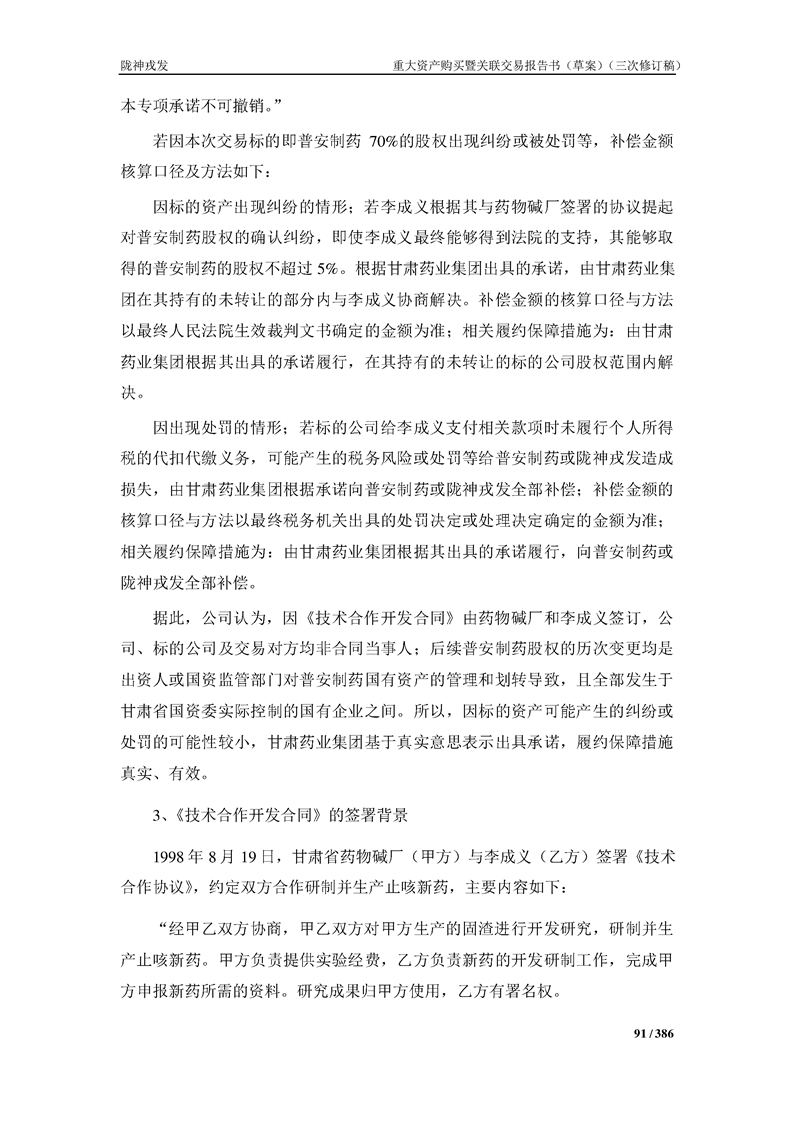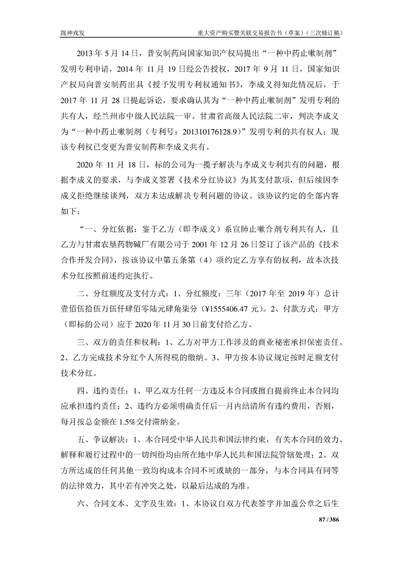甘肅隴神戎發(fā)藥業(yè)股份有限公司重大資產(chǎn)購買暨關(guān)聯(lián)交易報告書(草案)(三次修訂稿)
